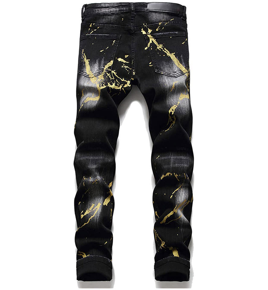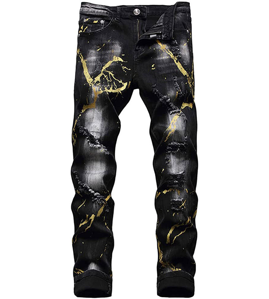 กางเกงยีนส์รัดรูปผ้ายืดขาดสำหรับผู้ชาย,กางเกงยีนส์ขาดทรงสลิมฟิตขาดเป็นริ้วสีดำสีขาวสีแดง