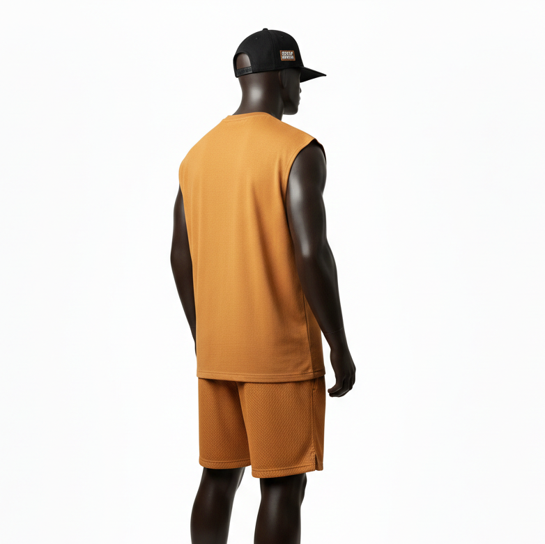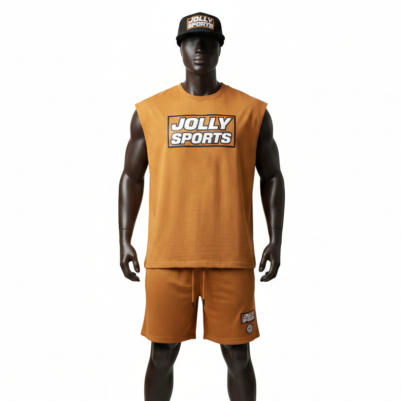 ชุดเสื้อกล้ามและกางเกงขาสั้นผู้ชาย ผ้าเนื้อบางเบา 180 GSM รับสกรีนโลโก้ด้วยความร้อน เสื้อกล้ามและกางเกงขาสั้นผู้ชาย