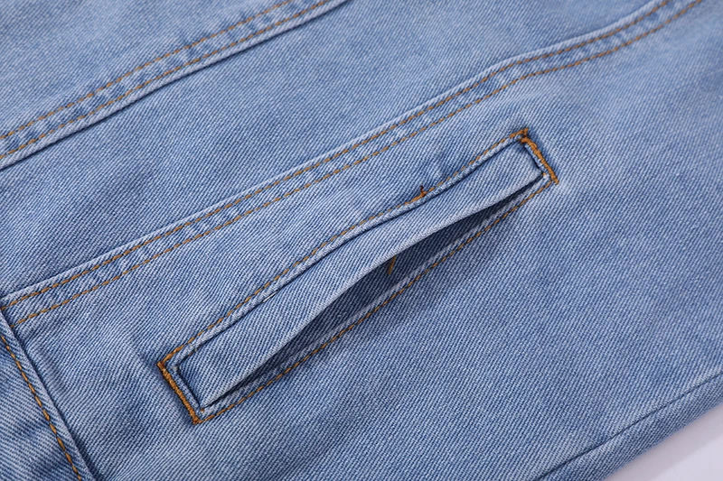 ชื่อผลิตภัณฑ์:แจ็กเก็ตยีนส์เข้ารูปสำหรับผู้ชายสีทึบมีปกกระดุมแถวเดียว