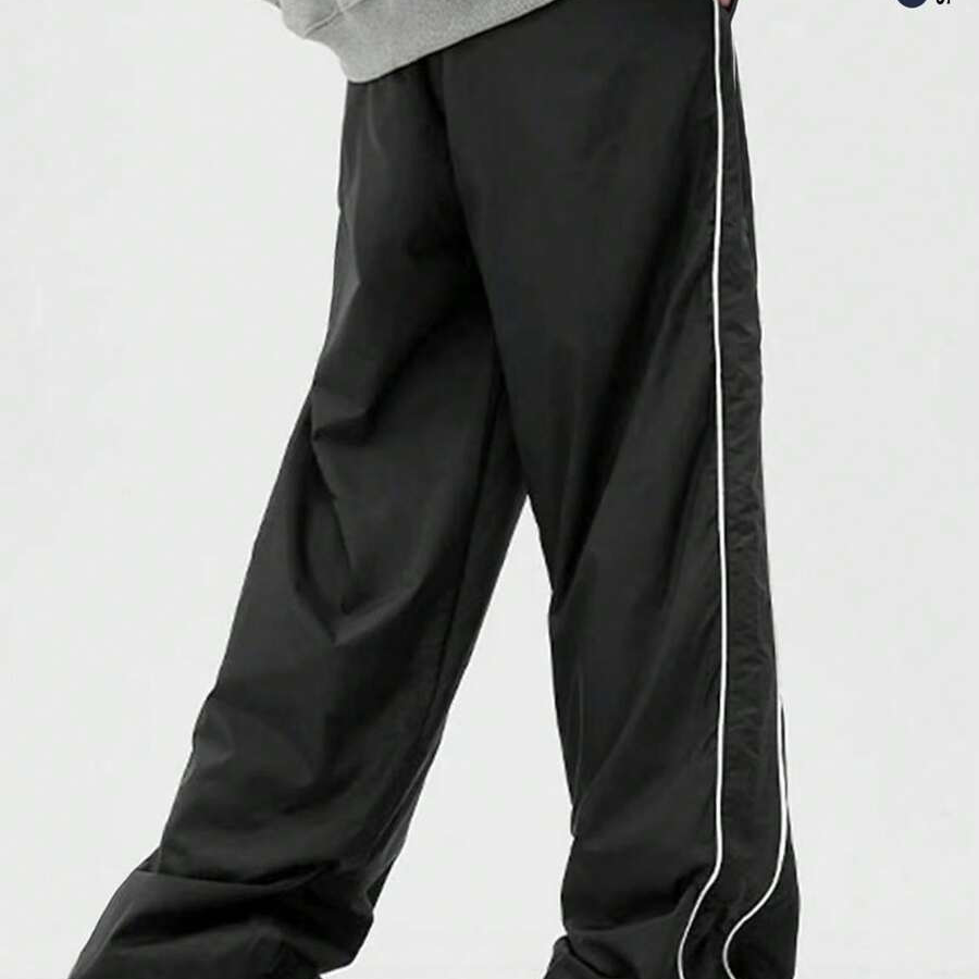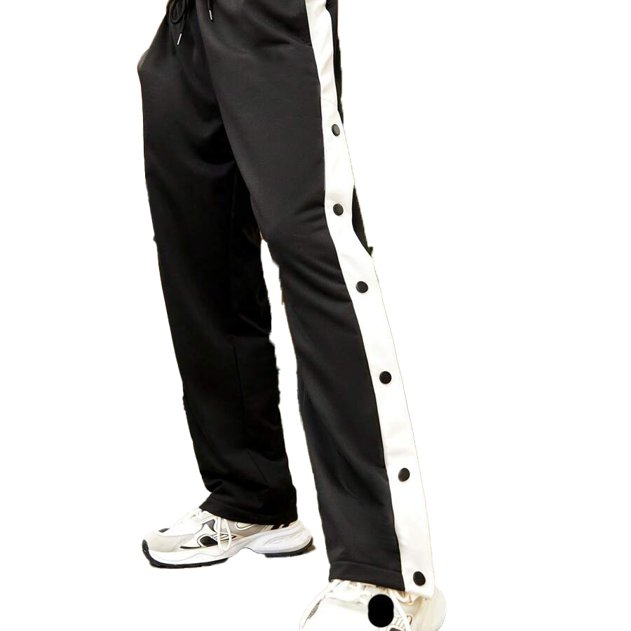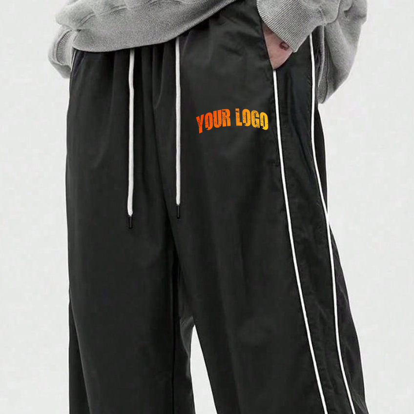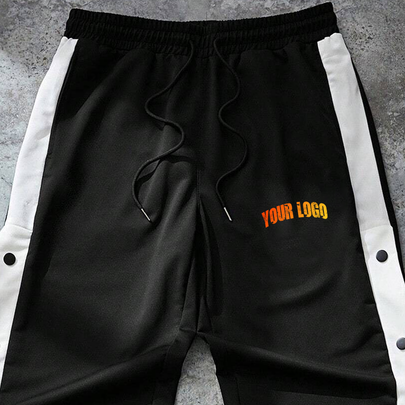 กางเกงจ็อกเกอร์ผู้ชายแบบมีกระดุมแป๊ก แถบข้าง แต่งโลโก้ได้ สตรีทแวร์ เอวยางยืด กางเกงแทร็คขายส่ง