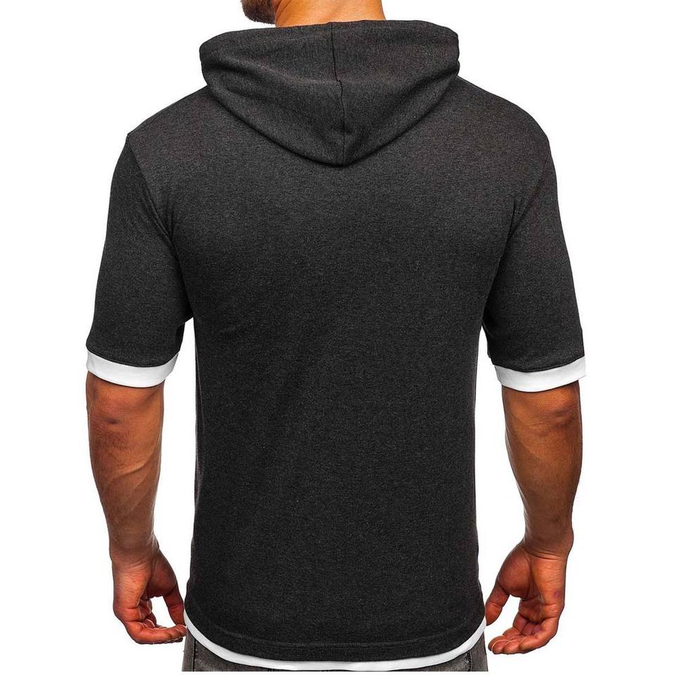 เสื้อยืดแขนสั้นมีฮู้ดสำหรับผู้ชายเสื้อยืดมีฮู้ดแขนสั้นมีเชือกผูกสีขาวแบบกำหนดเอง