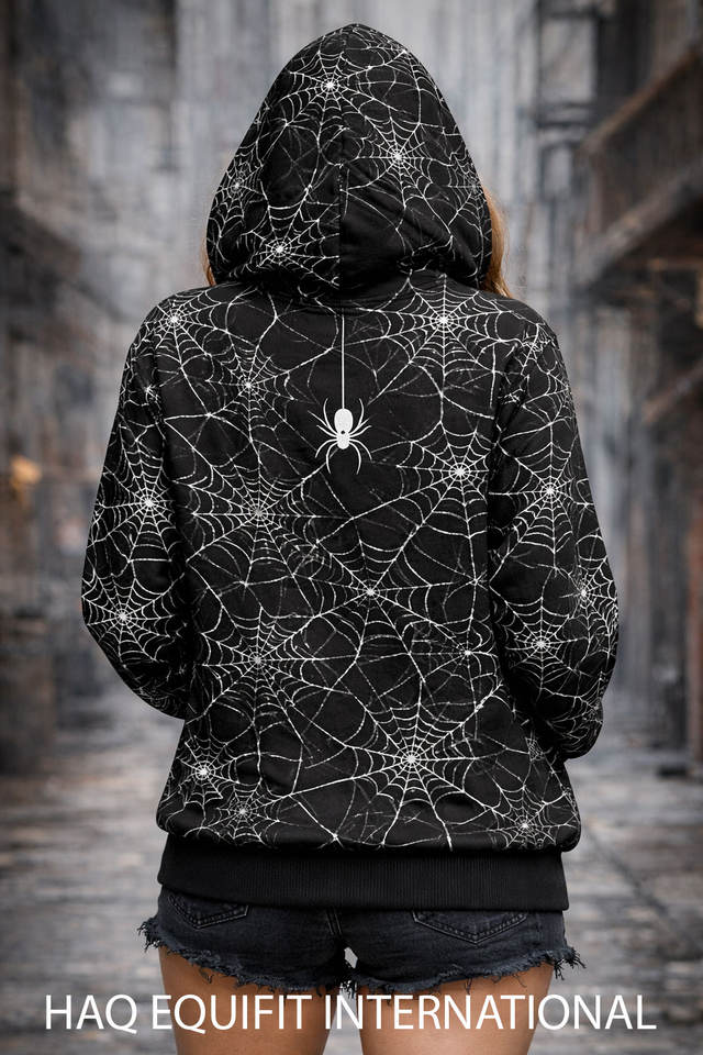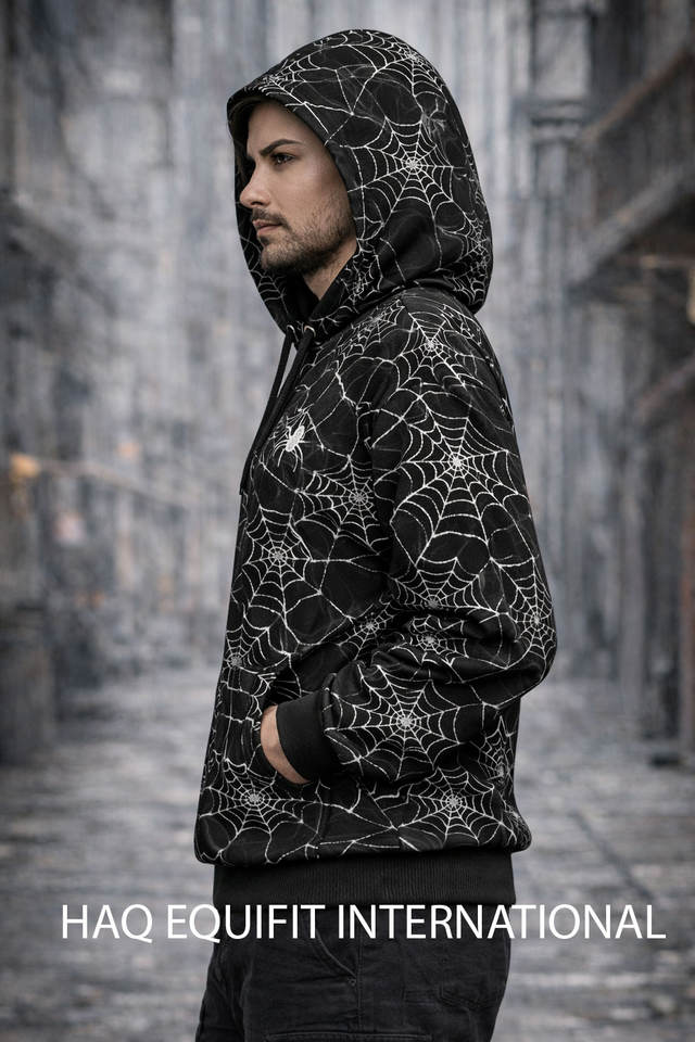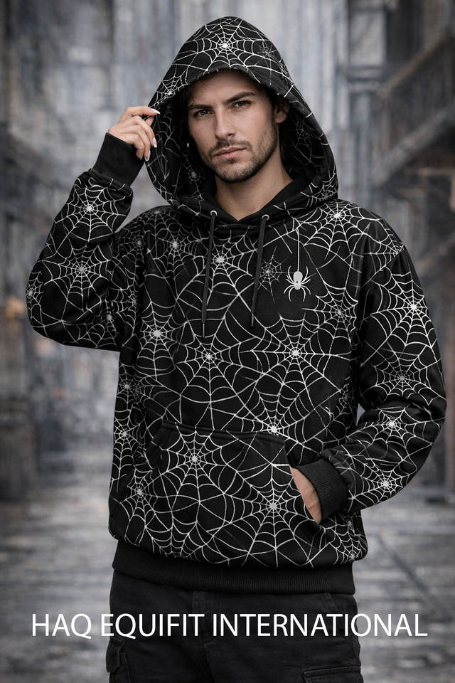 เสื้อฮู้ดลายใยแมงมุมสำหรับผู้ชาย ผ้าโพลีเอสเตอร์ พิมพ์ลายแบบซับลิเมชั่น เสื้อสวมหัวลำลอง สั่งทำได้ตามต้องการ