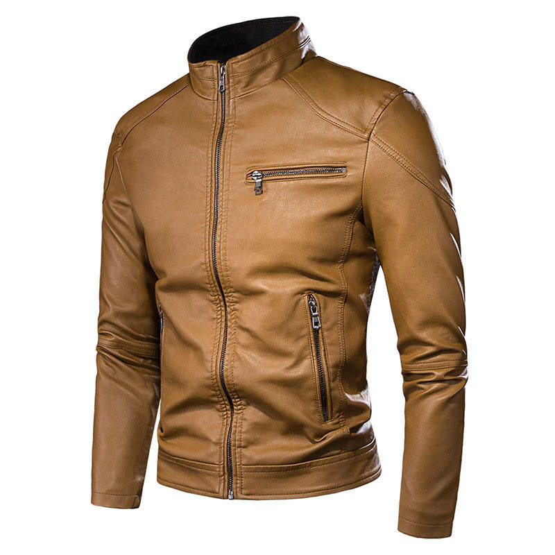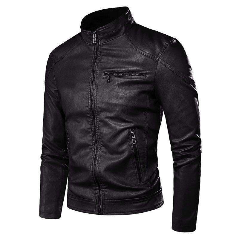 แจ็คเก็ตหนัง PU สำหรับผู้ชาย, เสื้อแจ็คเก็ตหนังวินเทจลำลองสำหรับขี่มอเตอร์ไซค์ฤดูใบไม้ผลิใหม่