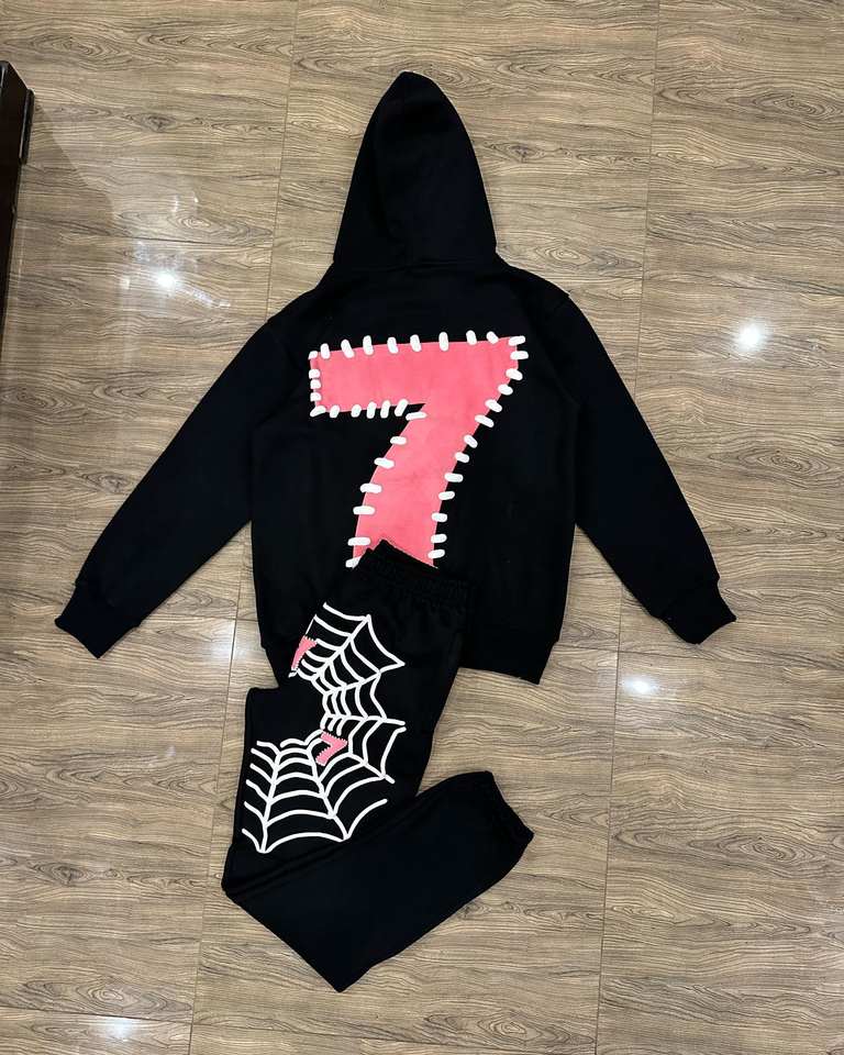 ชุดเซ็ตสตรีทแวร์ เสื้อฮู้ดพิมพ์ลายตัวเลข ทรงแฟลร์ แบรนด์ Men Stacked