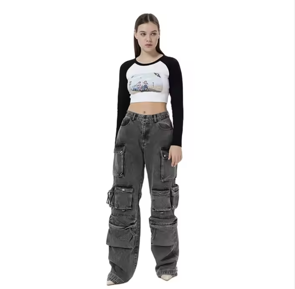 กางเกงวอร์มขายาวสำหรับผู้ชายกางเกงสเวตเตอร์แบบมีเชือกรูดกางเกงคาร์โก้ Y2k ขาบานสำหรับผู้หญิง