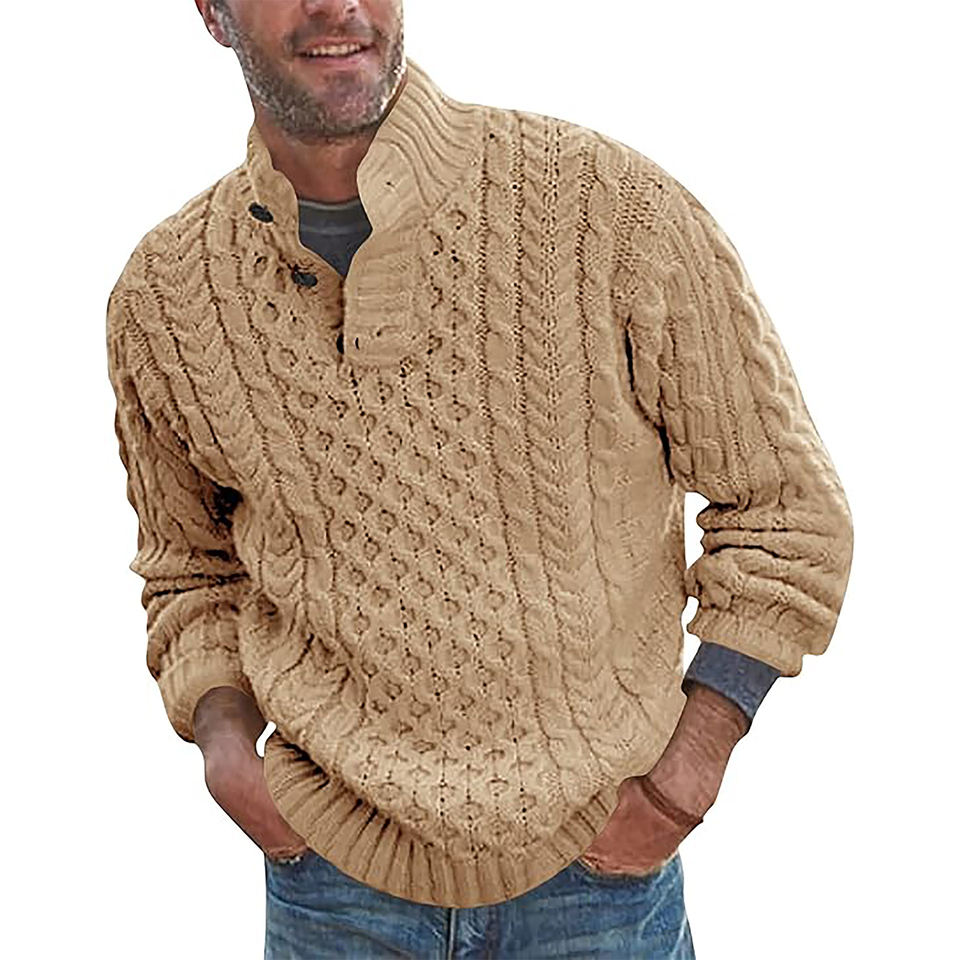เสื้อสเวตเตอร์ถักคอปกตั้งสำหรับผู้ชายเสื้อแบบสวมหัวมีกระดุมบิดให้ความอบอุ่นในฤดูหนาว