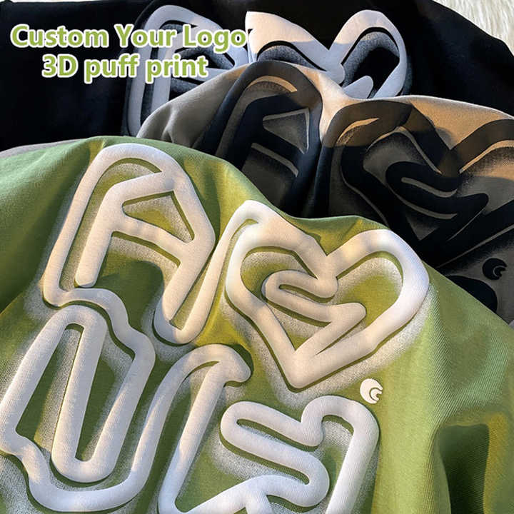 เสื้อเชิ๊ตพิมพ์ลายพัฟใส่ได้ทั้งชายและหญิงเสื้อพิมพ์ลายเสื้อยืดทรงหลวมใส่สบายสำหรับผู้ชายเสื้อผ้าแนวสตรีทแวร์ผ้าคอตตอน100% สำหรับผู้ชายโลโก้ออกแบบได้ตามที่ต้องการ