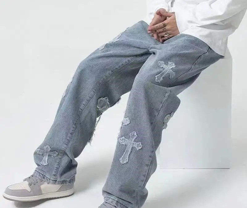 กางเกงยีนส์ผู้ชายแนวสตรีทแวร์ผ้าฝ้ายระบายอากาศน้ำหนักเบาทนทานเข้ารูปสีล้วนแบบคลาสสิกฤดูใบไม้ผลิฤดูหนาว