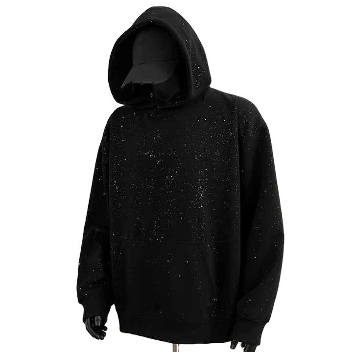 เสื้อฮู้ดผู้ชายทรงโอเวอร์ไซส์แบบมีซิปผ้าคอตตอนผ้าหนาประดับพลอยเทียมทรงโอเวอร์ไซส์