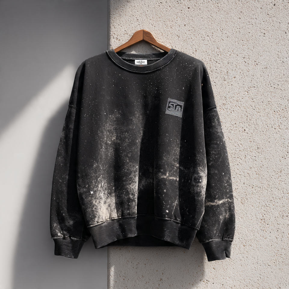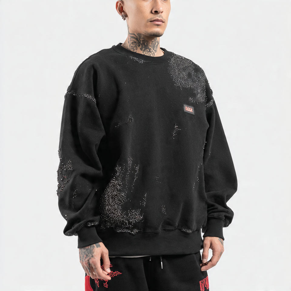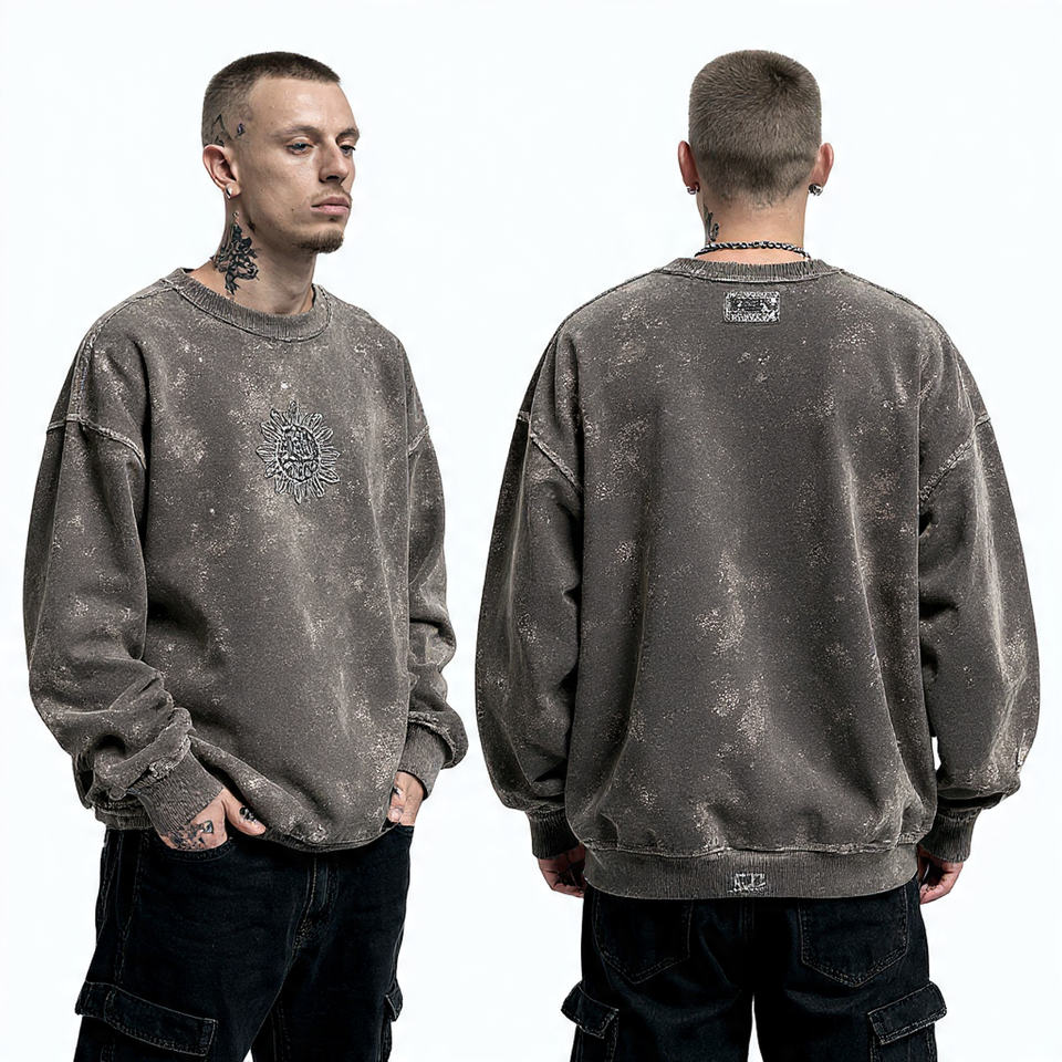 เสื้อสเวตเชิ้ตสตรีทแวร์ผู้ชาย สไตล์วินเทจ ลุคทำเก่า ล้างสีแบบสโตนวอช พิมพ์ลายโลโก้แบบนูน ลวดลายซันเฟดวอช