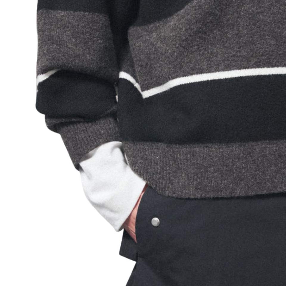 เสื้อโปโลถักลายทางผู้ชาย คอเสื้อตัดสี ชาร์โคล แขนยาว สวมใส่สบาย เหมาะสำหรับฤดูหนาว ผลิตจากผ้าฝ้ายผสมเนื้อนุ่ม รับผลิตแบบ OEM