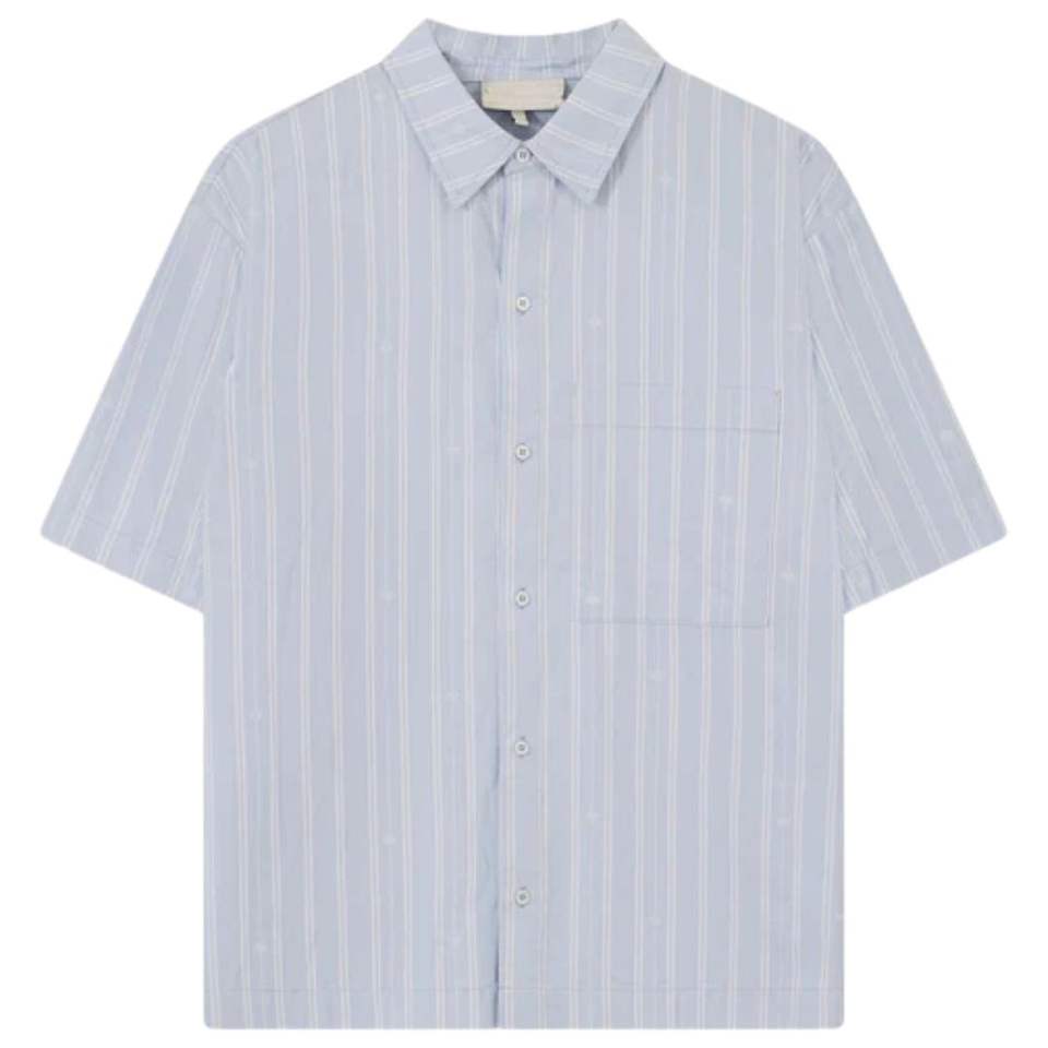 เสื้อเชิ้ตผู้ชายลายทาง แขนสั้น ติดกระดุม สไตล์ลำลอง สำหรับฤดูร้อน เนื้อผ้าทอเบา ลายทางแนวตั้ง รับผลิตแบบ OEM ขายส่ง