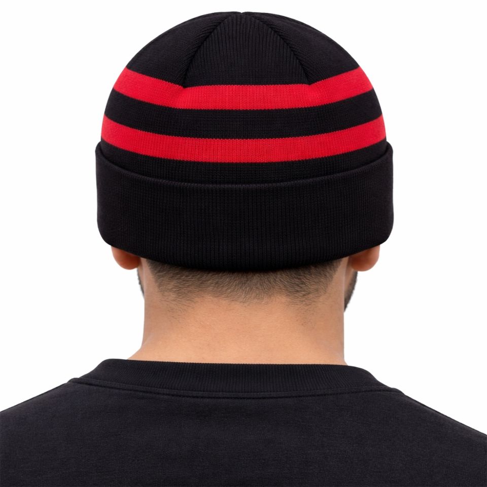 หมวกบีนนี่ไหมพรมลายทางสำหรับผู้ชาย ดีไซน์คลาสสิคสำหรับฤดูหนาว ขอบหมวกพับได้ เนื้อผ้าระบายอากาศและเป็นมิตรกับผิวหนัง รับสกรีนโลโก้ หมวกสำหรับทุกเพศ