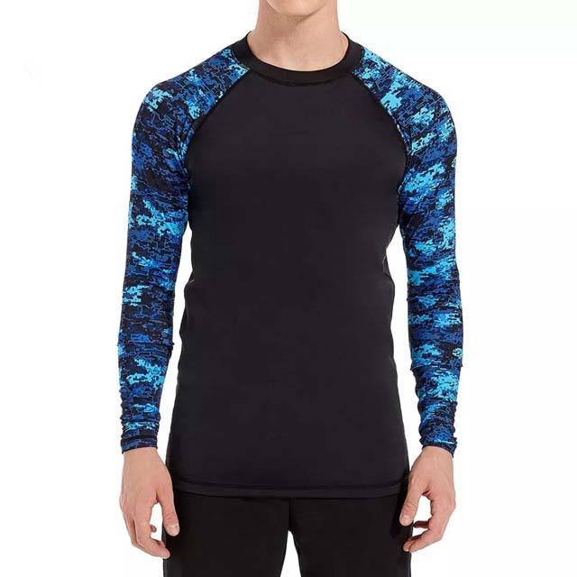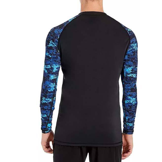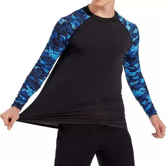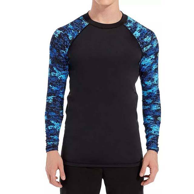 เสื้อแรชการ์ดแขนยาวสำหรับผู้ชาย ป้องกันรังสียูวี UPF50+ ผลิตจากผ้าฝ้ายโพลีเอสเตอร์ 100% สำหรับออกกำลังกาย ฟิตเนส คอเสื้อทรงเข้ารูป แห้งเร็ว ระบายอากาศได้ดี