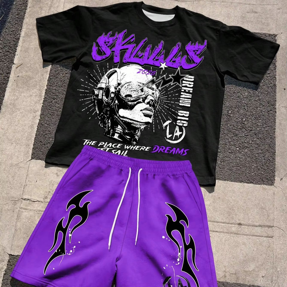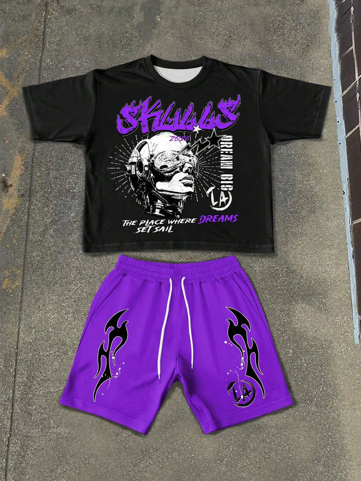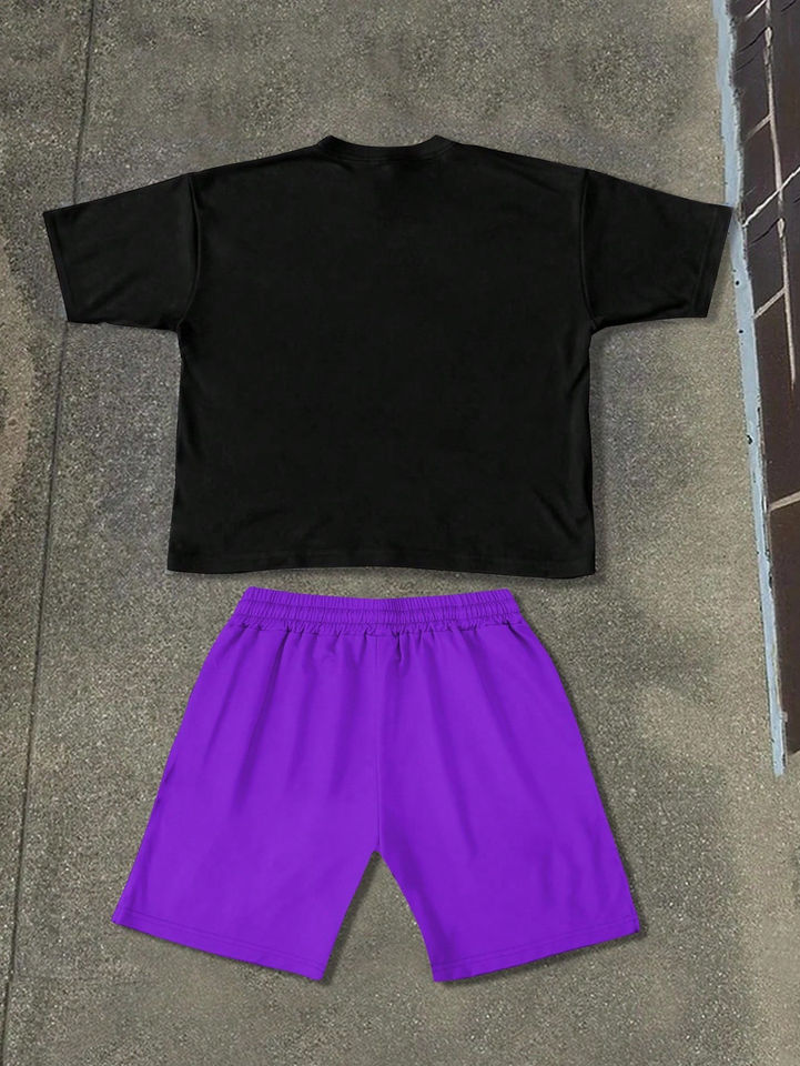 Men Summer Casual Letter Print Round Neck Short Sleeve T-Shirt And Shorts Set