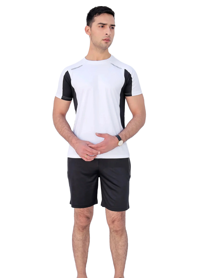 เซ็ตชุดวอร์มเล่นกีฬาแขนสั้นสำหรับผู้ชายเสื้อยืดและกางเกงขาสั้นชุดออกกำลังกาย2ชิ้นสำหรับเข้ายิมวิ่งออกกำลังกายฟิตเนส