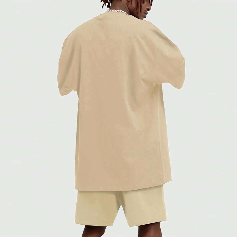 ชุดเสื้อยืดและกางเกงขาสั้นผ้าเทอร์รี่สไตล์สปอร์ตสำหรับผู้ชาย ฤดูร้อน แห้งเร็ว ผ้าฝ้าย 100% เสื้อยืดโอเวอร์ไซส์พร้อมกางเกงขาสั้นเข้าชุด