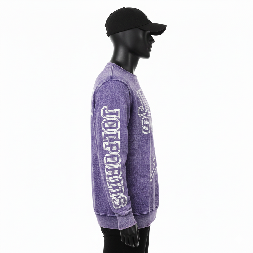 เสื้อสเวตเชิ้ตผู้ชาย ผ้าฝ้ายฟลีซ 320 GSM สีม่วงฟอกกรด คอกลม พิมพ์ลายสกรีน โลโก้สั่งทำ เสื้อสเวตเชิ้ตพื้นฐานสำหรับผู้ชาย