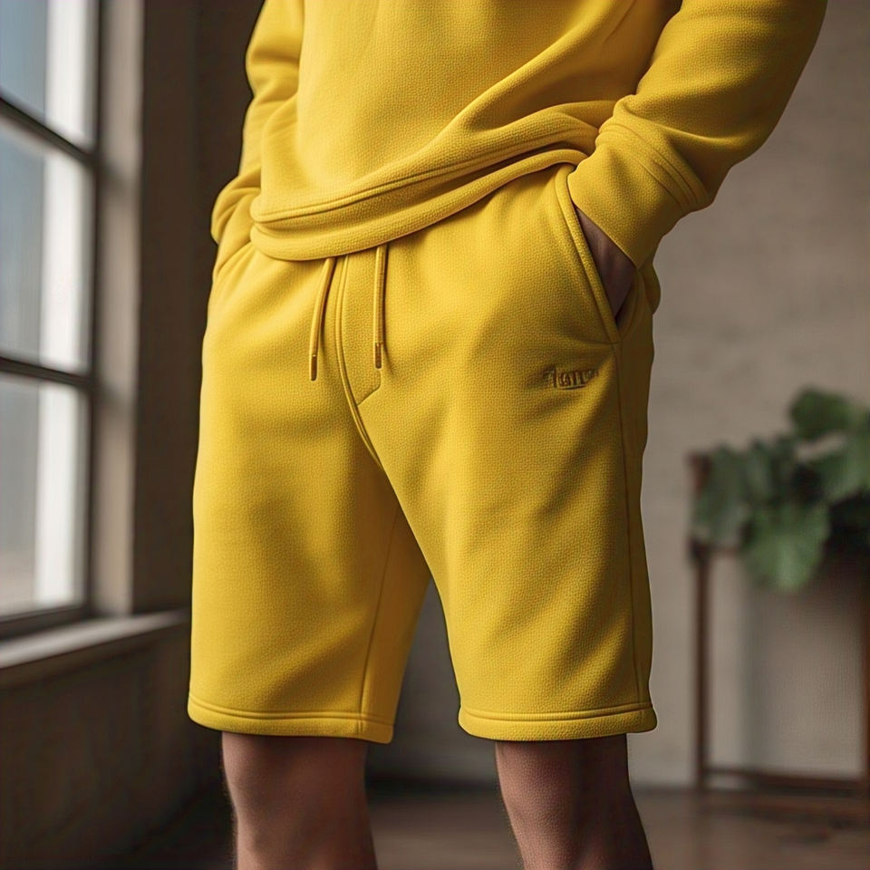 กางเกงวอร์มสำหรับผู้ชายกางเกงขาสั้นสีเหลืองน้ำหนักปานกลางกางเกงผ้าฟลีซสำหรับวิ่งออกกำลังกายฟิตเนส