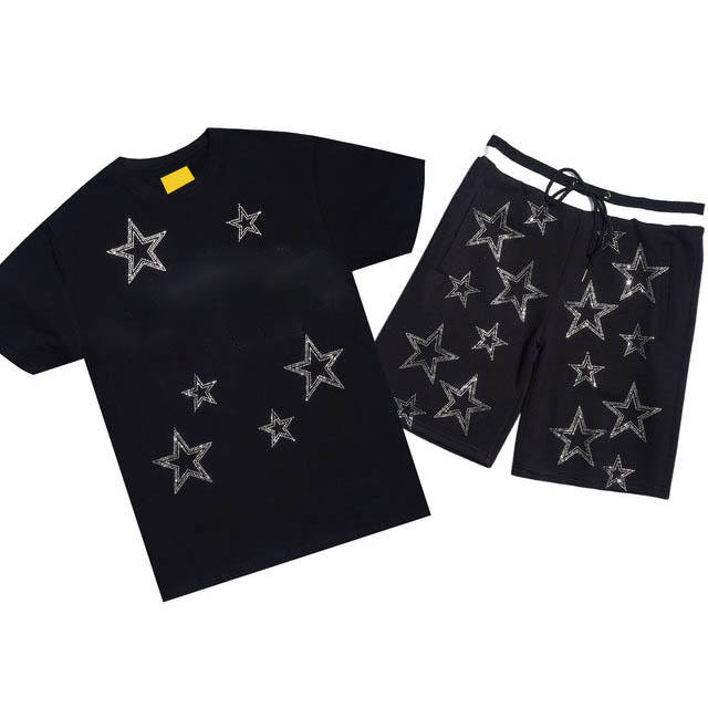 เสื้อยืดและกางเกงขาสั้นผู้ชาย ชุดลำลองฤดูร้อนสุดเท่ ชุดสองชิ้นสำหรับออกกำลังกายและสวมใส่สบายทุกวัน