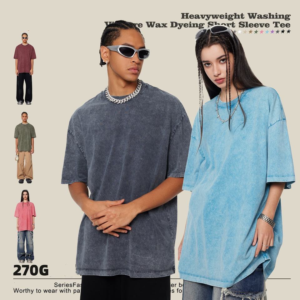 เสื้อยืดผู้ชายทรงหลวมแขนสั้นผ้าบาติกเสื้อ100% คอตตอนซักได้แนวสตรีทสูง