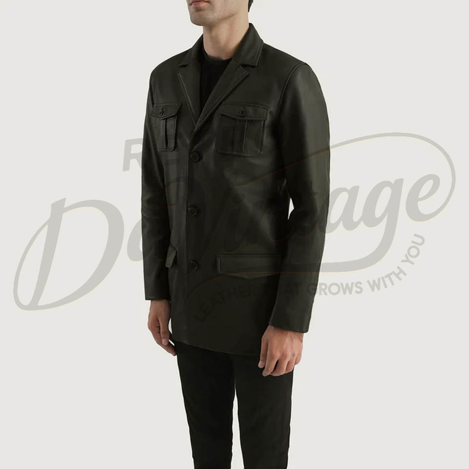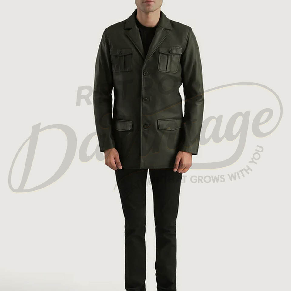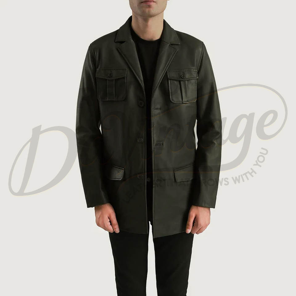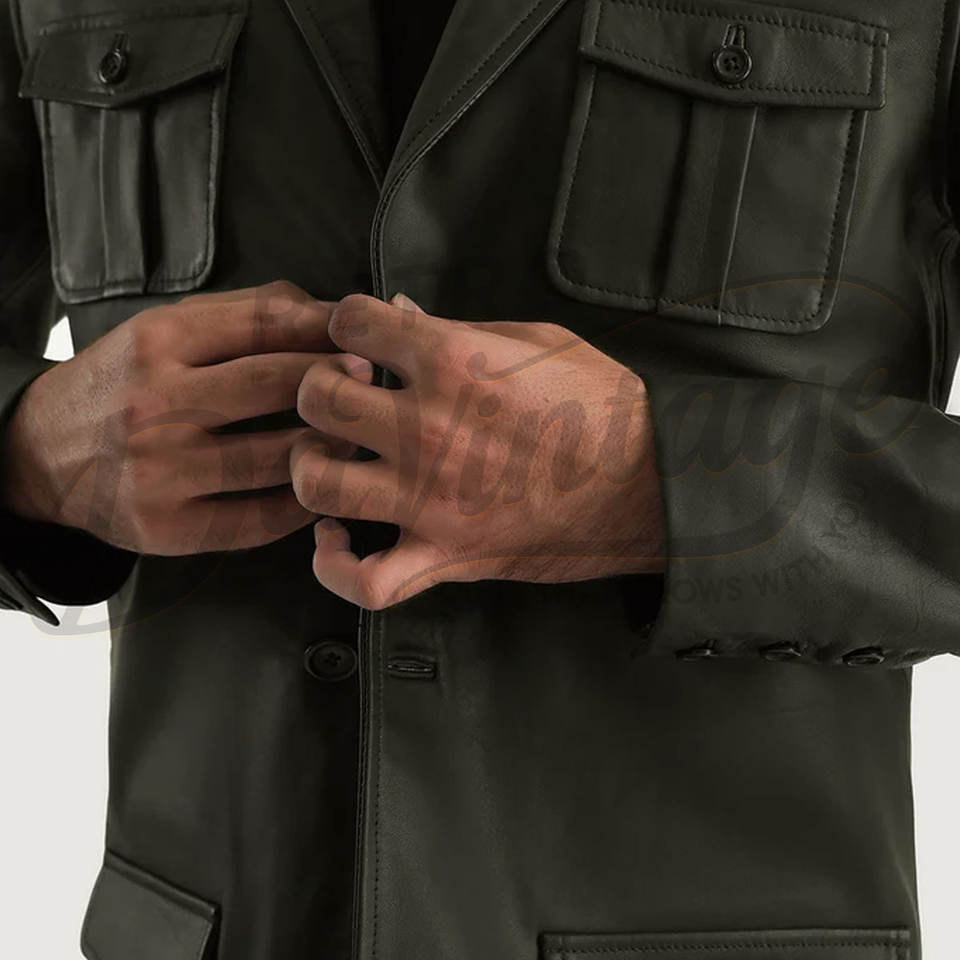 เสื้อแจ็คเก็ตหนังแท้ทรงซาฟารีสำหรับผู้ชาย หนังแกะคุณภาพพรีเมียม กระเป๋าสี่ช่อง สไตล์วินเทจลำลอง ติดกระดุม