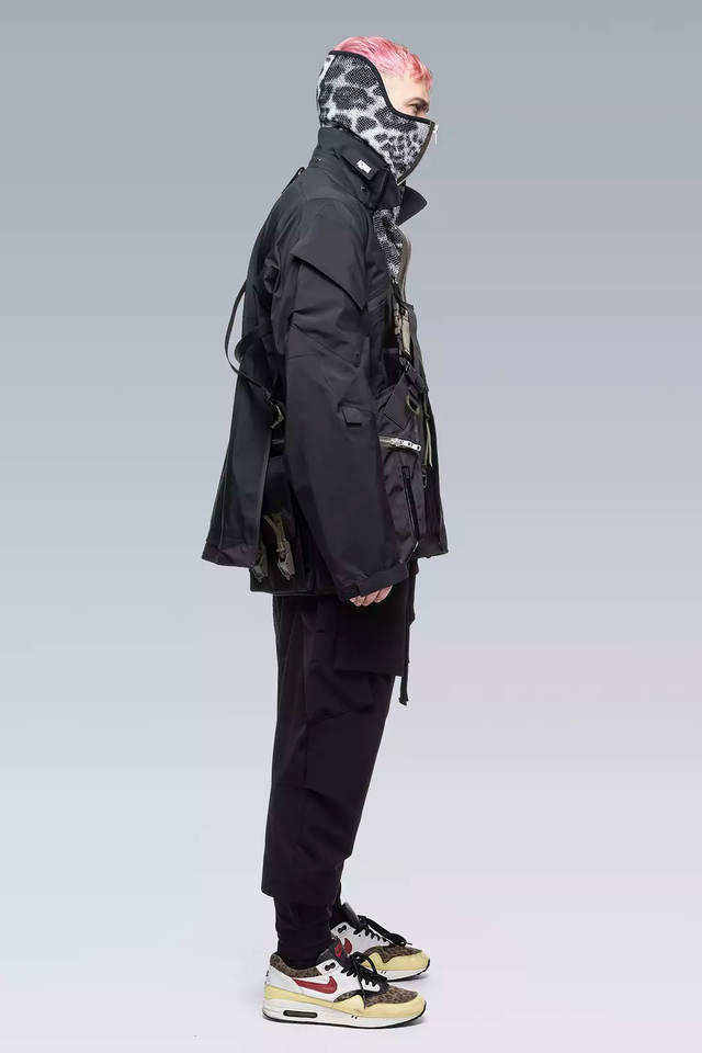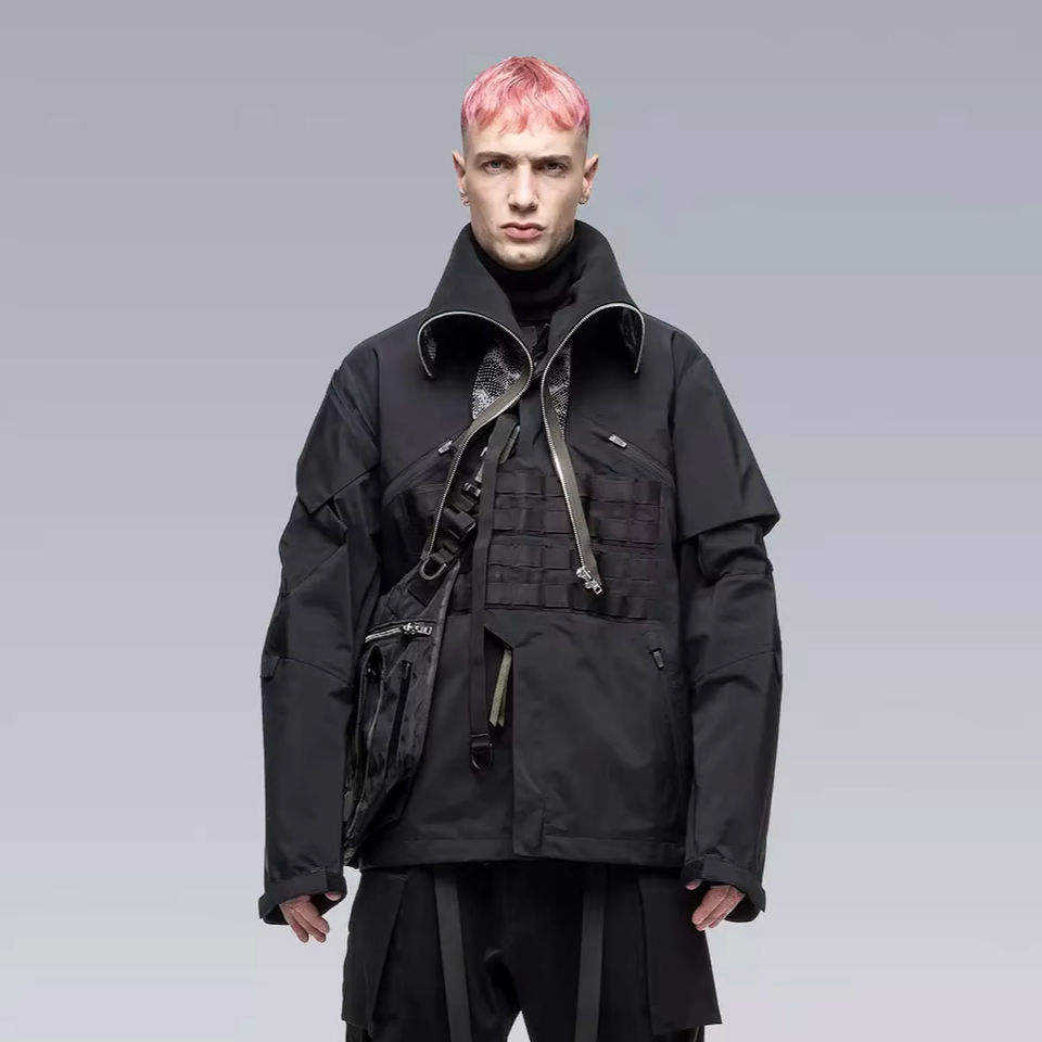 เสื้อแจ็คเก็ตเทคแวร์ผู้ชาย สไตล์แทคติคอล สตรีทแวร์ กระเป๋าหลายช่อง กันน้ำ ไซเบอร์พังก์ วินด์เบรกเกอร์ เสื้อโค้ทคาร์โก้สำหรับผู้ชาย