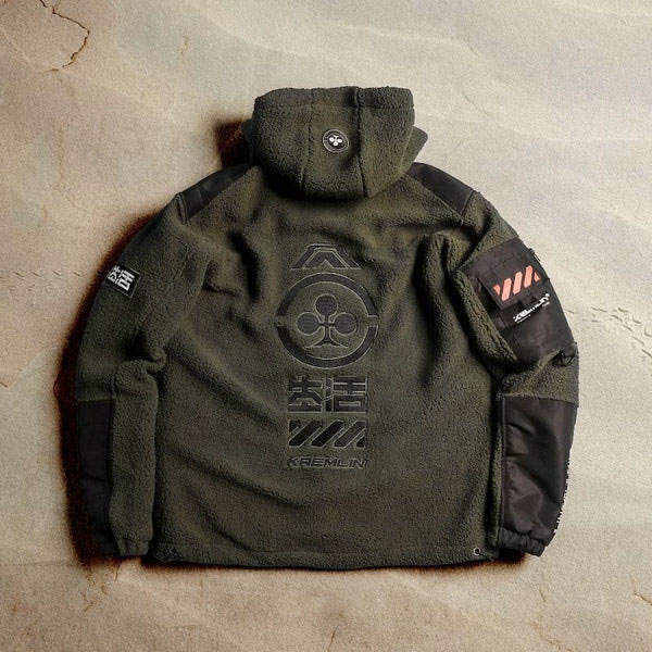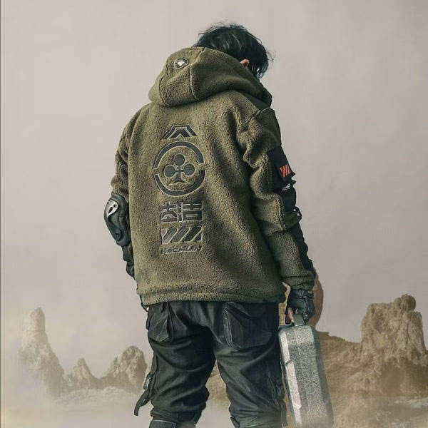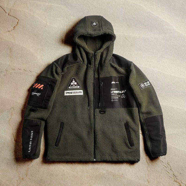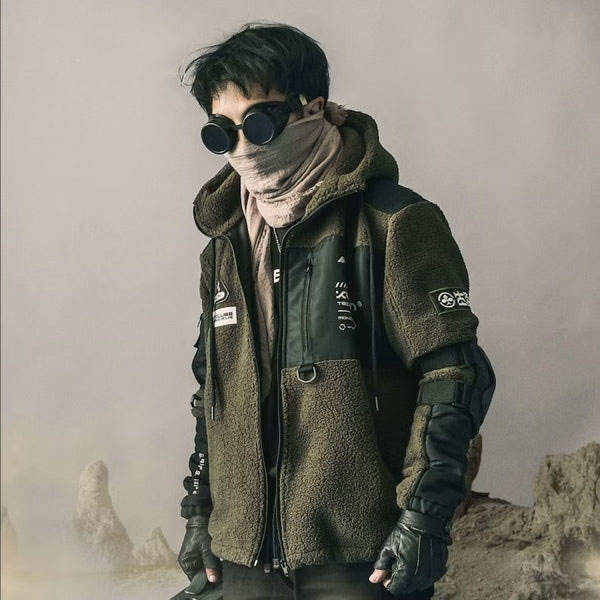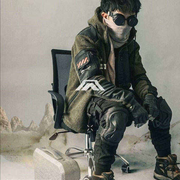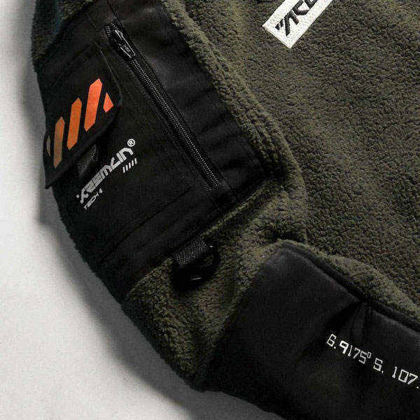 เสื้อแจ็คเก็ตเทคแวร์ผู้ชาย ผ้าฟลีซ สไตล์ยุทิลิตี้ แนวสตรีทแวร์ มีฮู้ด กันลม บุขนเชอร์ปา อุ่นสบาย สไตล์ลำลอง เหมาะสำหรับกิจกรรมกลางแจ้ง