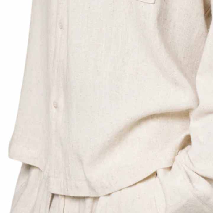 Men Textured Woven Shirt Long Sleeve Button Down Casual Loose Fit Lightweight Resort Wear OEM Wholesale Supply