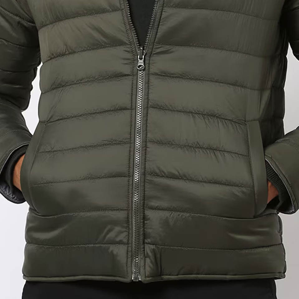 เสื้อแจ็คเก็ตพัฟเฟอร์บุขนสำหรับผู้ชาย ออกแบบมาสำหรับวันที่อากาศหนาวเย็น เสื้อแจ็คเก็ตพัฟเฟอร์แบบซิปเต็มตัว ให้ความกระชับสวมใส่สบาย