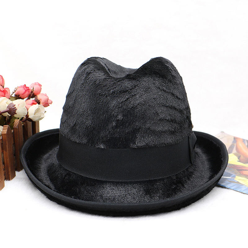 หมวกสักหลาดขนกระต่ายสำหรับผู้ชายหมวกเจ้าพ่อแบบดั้งเดิม