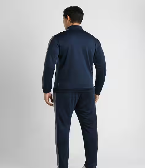 เซ็ตเสื้อแจ็กเก็ตและกางเกงสำหรับผู้ชายอินเทรนด์มีซิปสีฟ้าชุดวิ่งชุดวอร์มทันสมัยและใช้งานได้เป็นอมตะสำหรับทุกโอกาส
