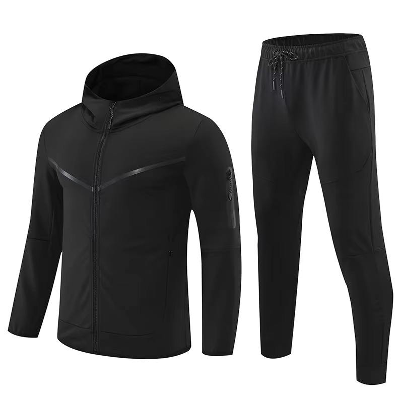 ชุดวอร์มผู้ชายแบบสองชิ้น ผ้าเทคฟลีซ สำหรับออกกำลังกาย ฟิตเนส เล่นกีฬา วิ่งจ๊อกกิ้ง และฝึกซ้อม สวมใส่สบายสำหรับผู้ชาย