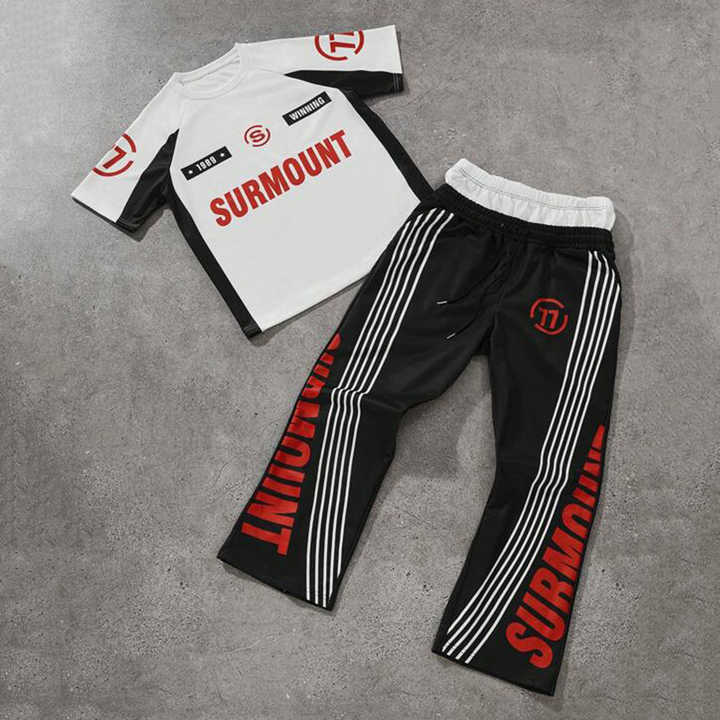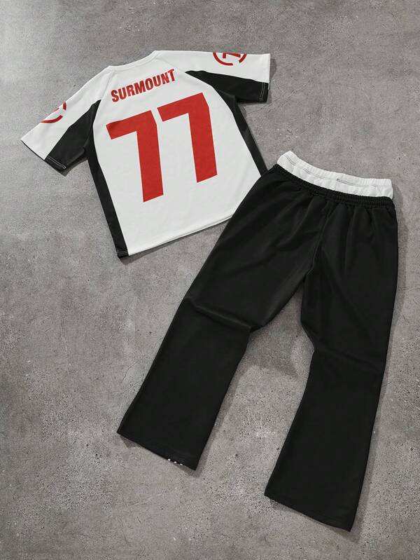 Men Two Side Printed Jersey and Jogger Co-ord Set Custom Logo Graphic Tracksuit Sportswear Fit with Contrast Elastic Waistband