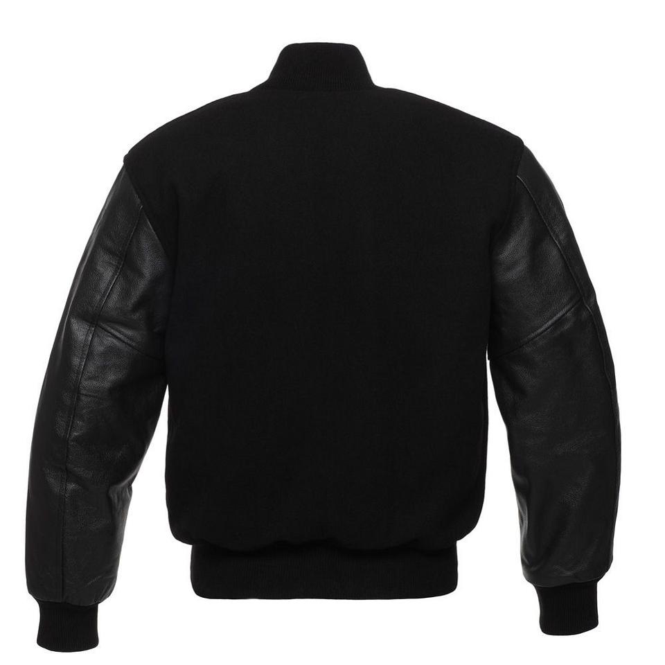 เสื้อแจ็คเก็ตวาร์ซิตี้ลายพรางสองสีสำหรับผู้ชาย แขนเสื้อโพลีเอสเตอร์สีเบจ ตัวเสื้อสีดำ คอตั้ง สไตล์วิทยาลัยแบบกำหนดเอง เสื้อโค้ทเลตเตอร์แมน