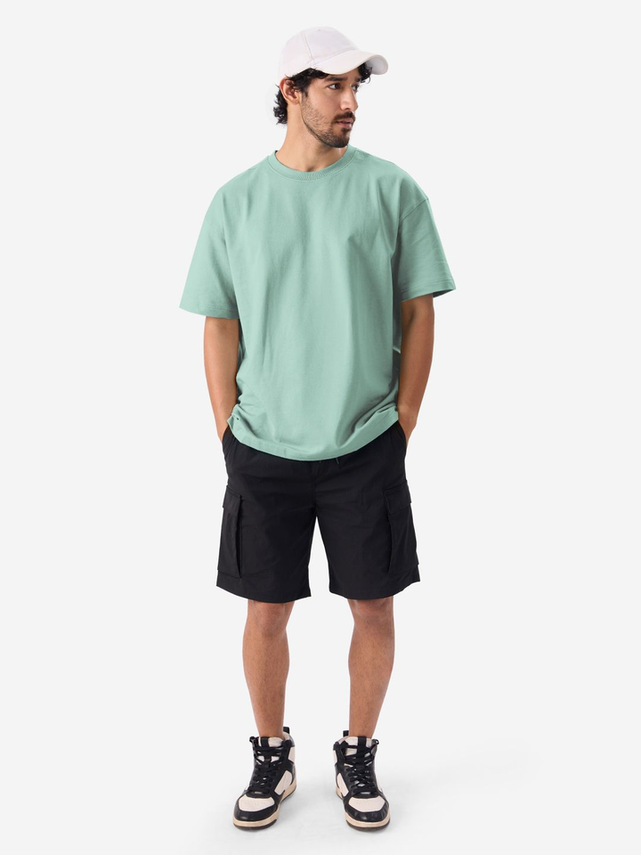 เสื้อยืดคอกลมโอเวอร์ไซส์พิมพ์ลายตัวอักษรสำหรับผู้ชาย แขนเสื้อแบบดรอปโชว์เดอร์ เนื้อผ้าระบายอากาศได้ดี เนื้อผ้าหนา มีสินค้าในสต็อก