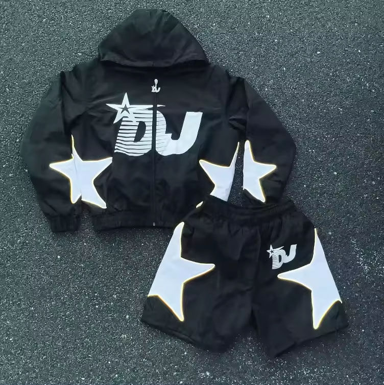 ชุดสั้นสตรีทสวมใส่ได้ทั้งชายและหญิงชุดกันลมระบายอากาศมีลายสีพื้นในราคาที่ดีที่สุด
