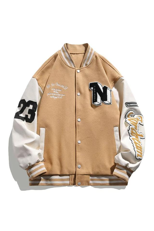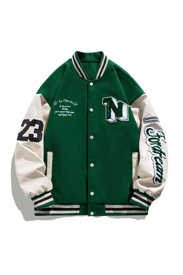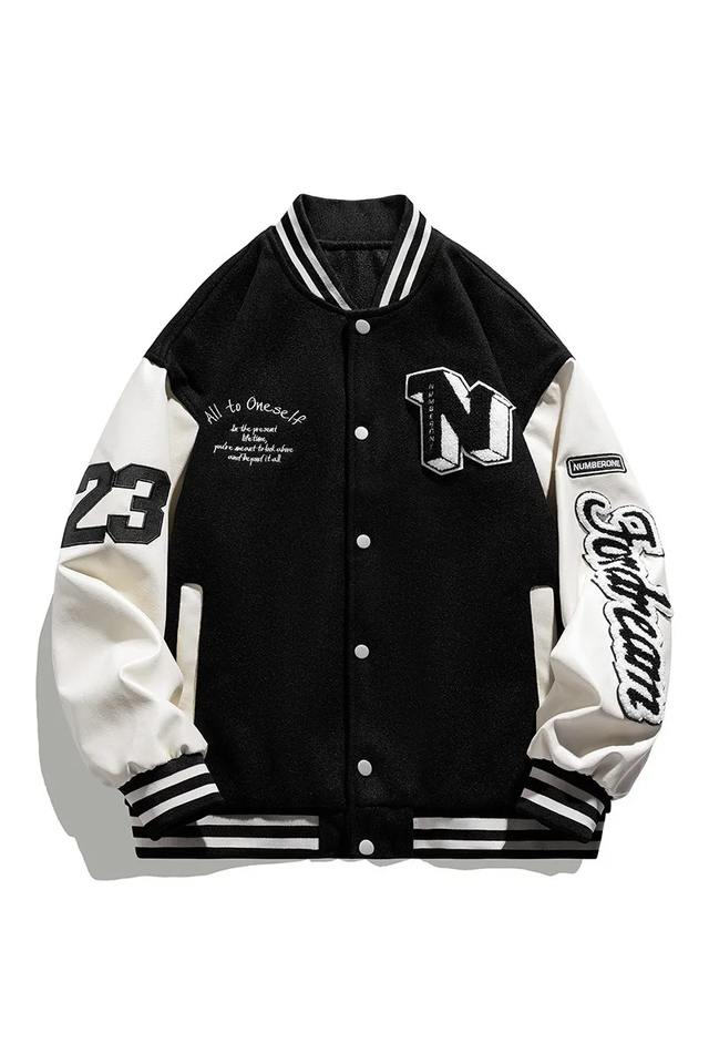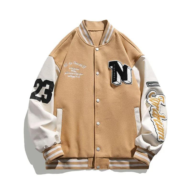 แจ็คเก็ตเบสบอลบอมเบอร์ฮิปฮอปฮาราจูกุสำหรับผู้ชายแจ็คเก็ตหนังปะติดลายตัวอักษรเสื้อโค้ทมหาวิทยาลัยใช้ได้ทั้งผู้หญิงและผู้ชาย