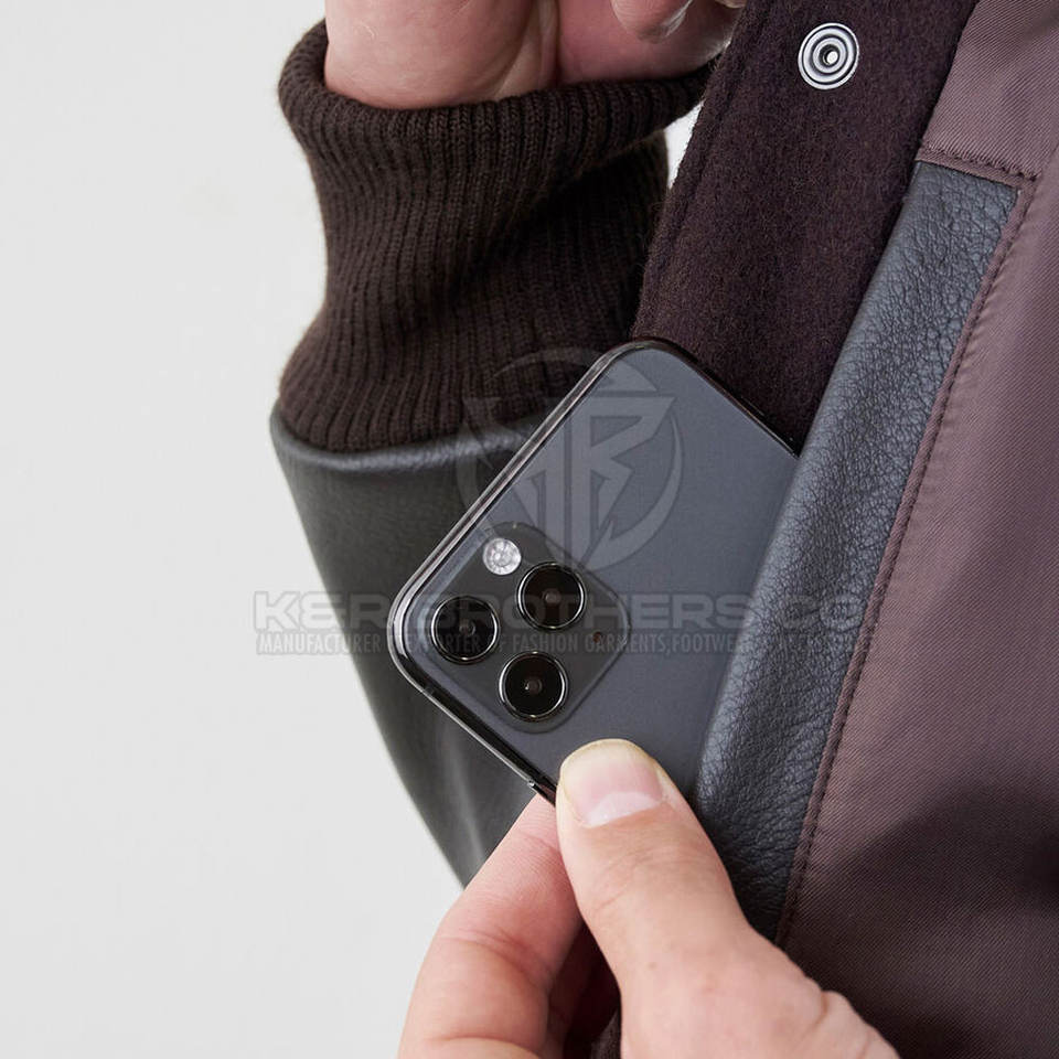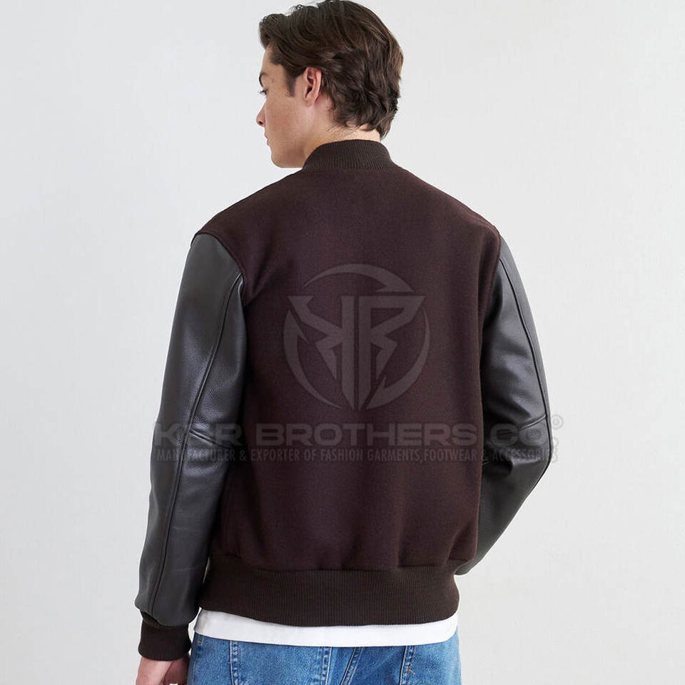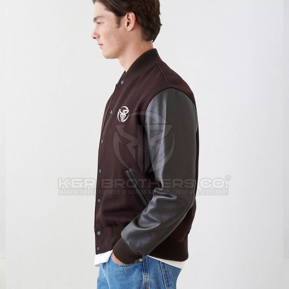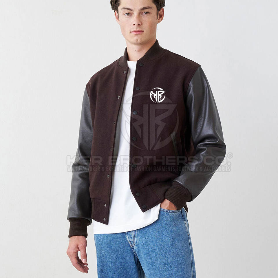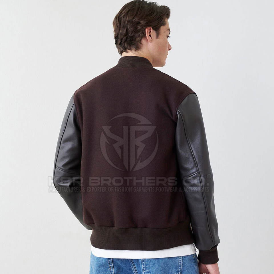 Breathable Outdoor Men Leather Sleeves Varsity Jacket