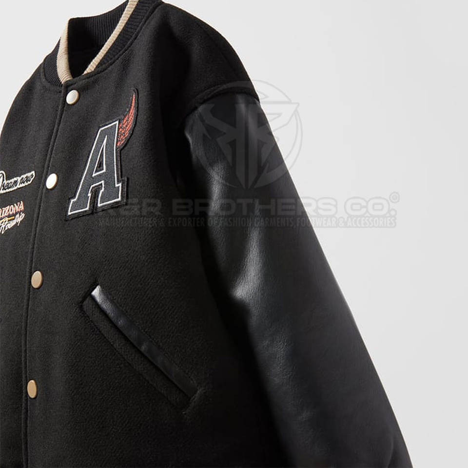 Breathable Outdoor Men Leather Sleeves Varsity Jacket