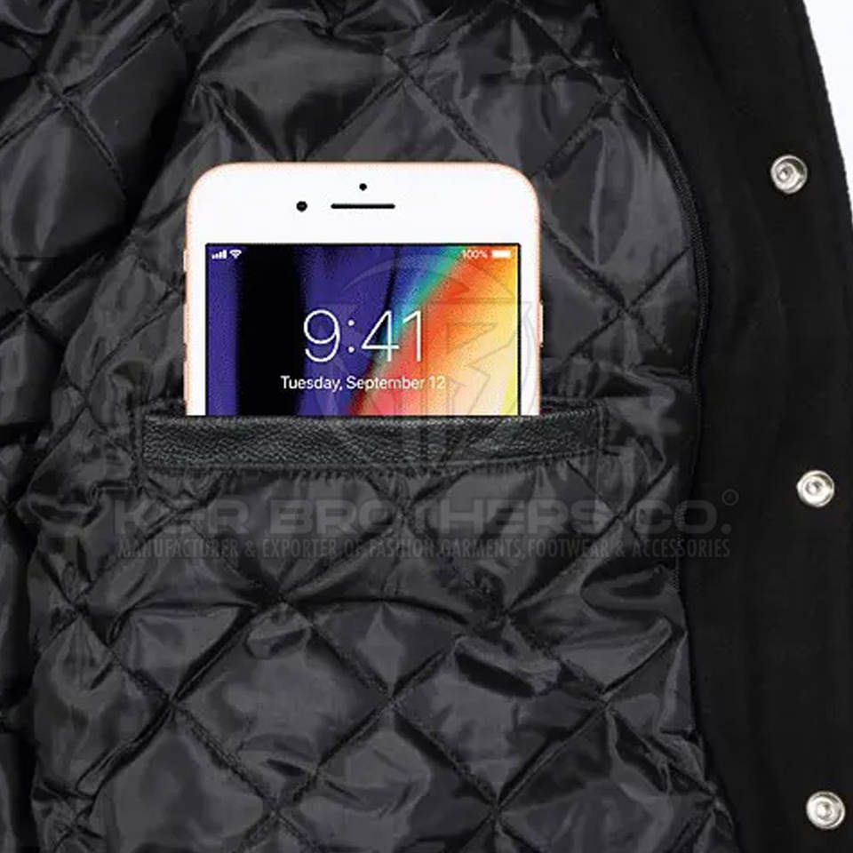 เสื้อแจ็กเก็ตทีมเบสบอลแขนเสื้อหนังแท้สำหรับผู้ชายเสื้อแจ็คเก็ตมีตัวอักษรคุณภาพสูง