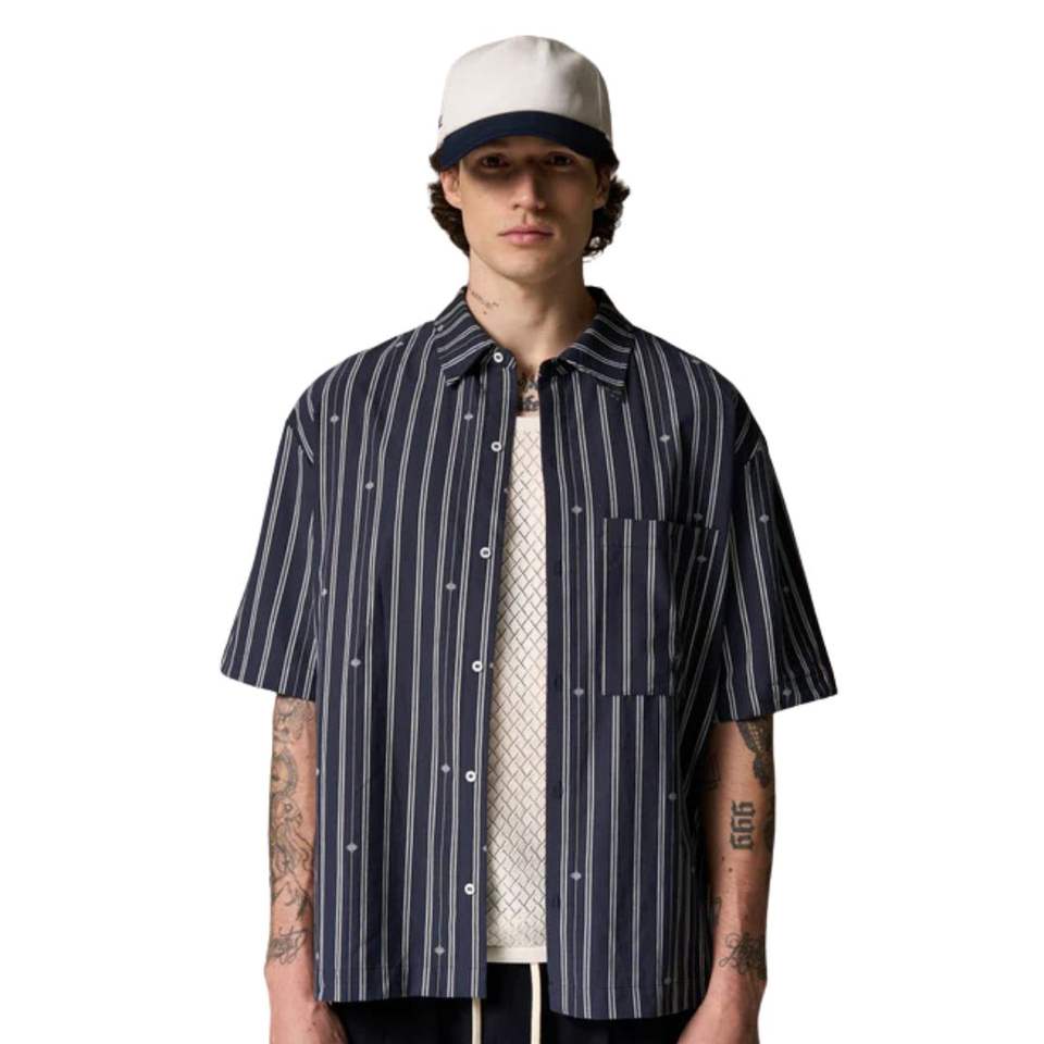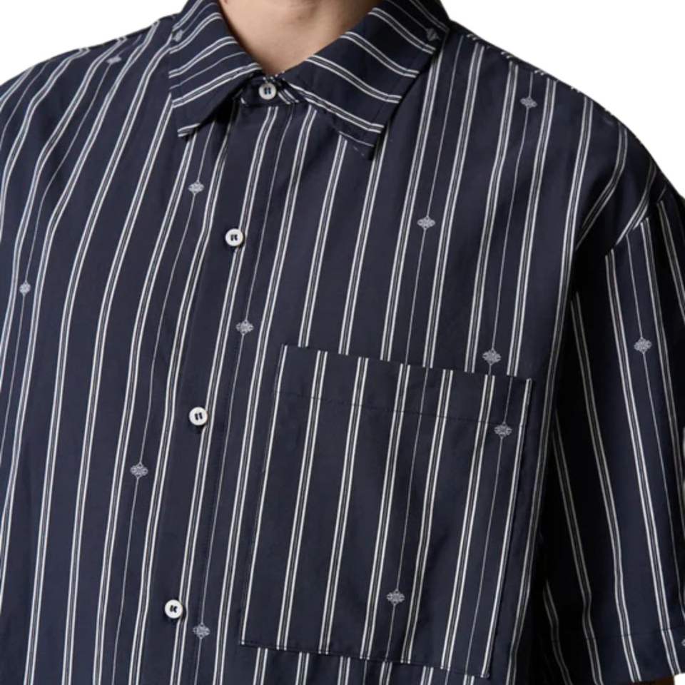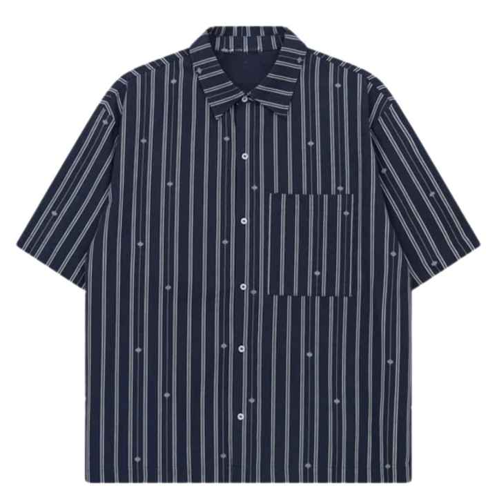 เสื้อเชิ้ตผู้ชายลายทางแนวตั้ง แขนสั้น ติดกระดุม ลำลอง ใส่สบาย น้ำหนักเบา ผ้าทอ สำหรับฤดูร้อน รับผลิตแบบ OEM ขายส่ง