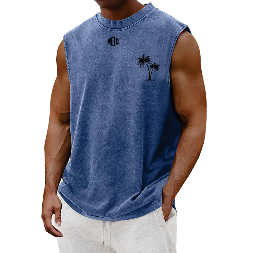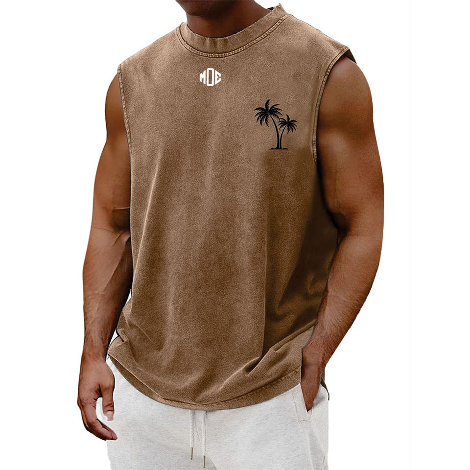 เสื้อกล้ามถักทรงวินเทจสำหรับผู้ชาย ผ้าคอตตอน 100% ล้างสีแบบแอซิดวอช รับสกรีนโลโก้ เสื้อผ้าสตรีทแวร์ฤดูร้อน ผ้าคอตตอนผสม รับผลิตแบบ OEM จำนวนมาก