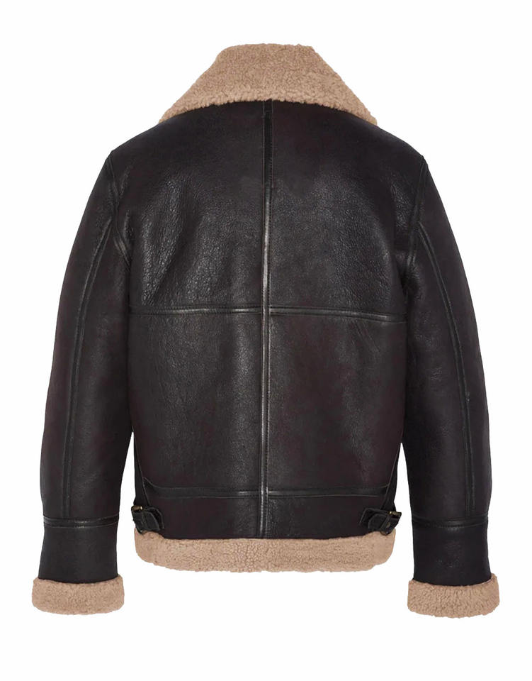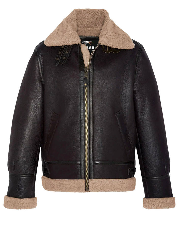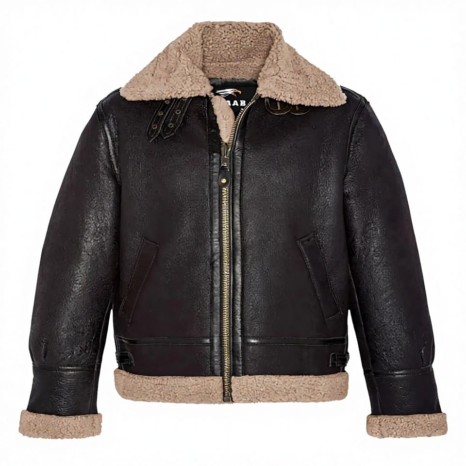 เสื้อแจ็คเก็ตนักบินวินเทจหนังแท้บุขนเชอร์ปาอุ่นๆ สไตล์นักบินสหรัฐฯ ย้อนยุค