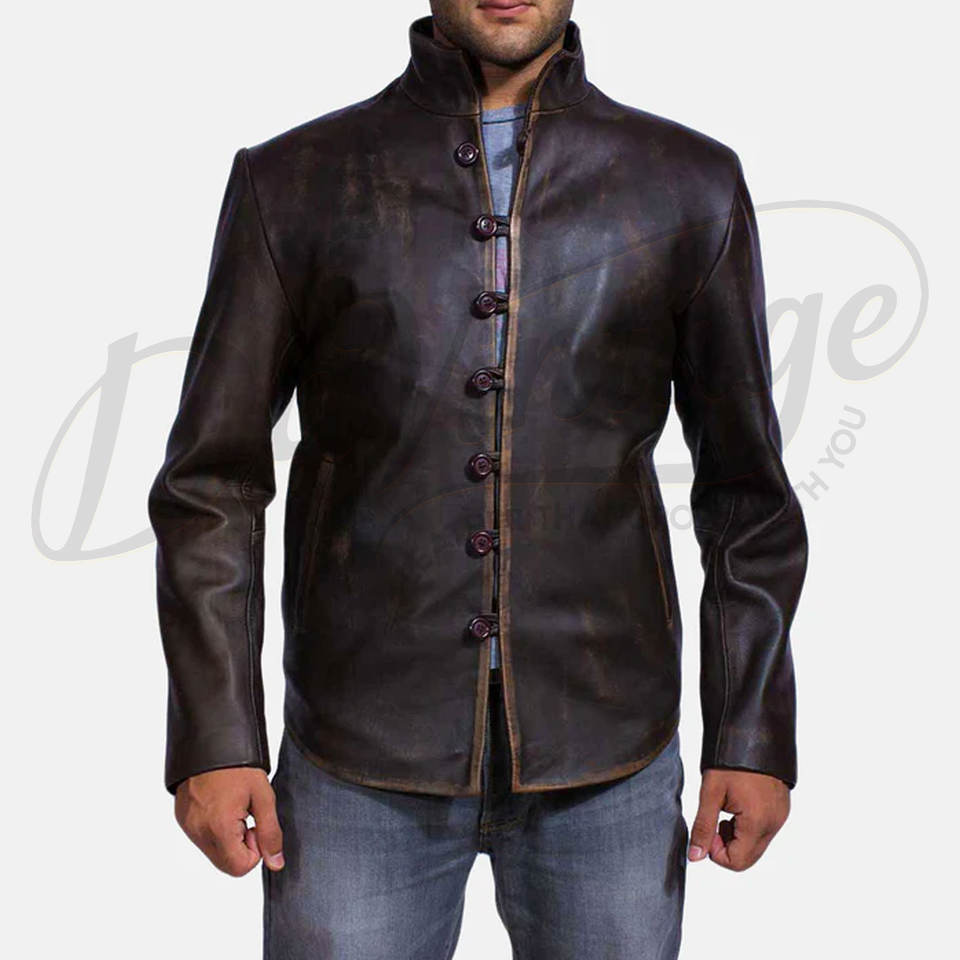 เสื้อแจ็คเก็ตหนังสีน้ำตาลเข้มสไตล์วินเทจสำหรับผู้ชาย แบบกระดุมติด ทรงเข้ารูป สไตล์ลำลองย้อนยุค แฟชั่นเสื้อคลุม