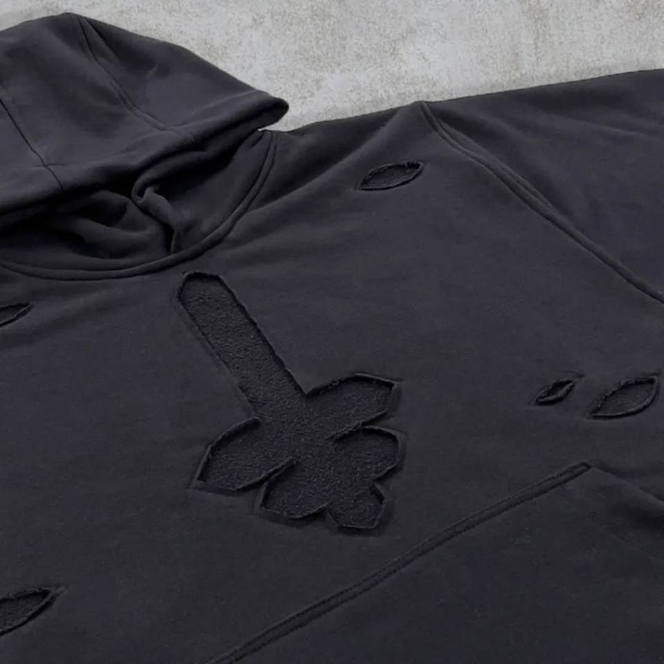 เสื้อฮู้ดดี้วินเทจแบบยูนิเซ็กซ์ ผ้าฝ้ายเทอร์รี่ฟลีซ 100% ล้างสีแบบแอซิดวอช ปักลาย 3 มิติ คอฮู้ดทรงโอเวอร์ไซส์ พิมพ์ลายสไตล์สตรีทแวร์สำหรับฤดูใบไม้ร่วง