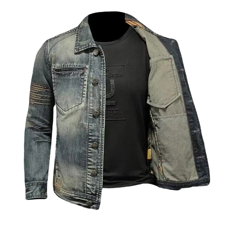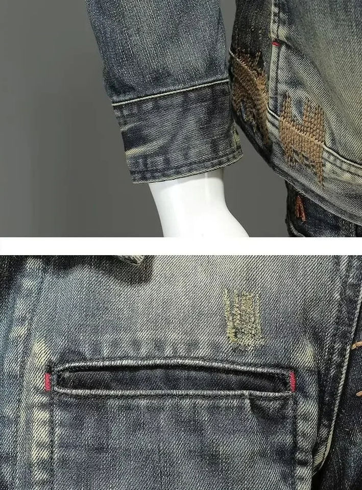 Product name:Men Retro Slim Fit Denim Jacket | Motorcycle Style Jean Coat