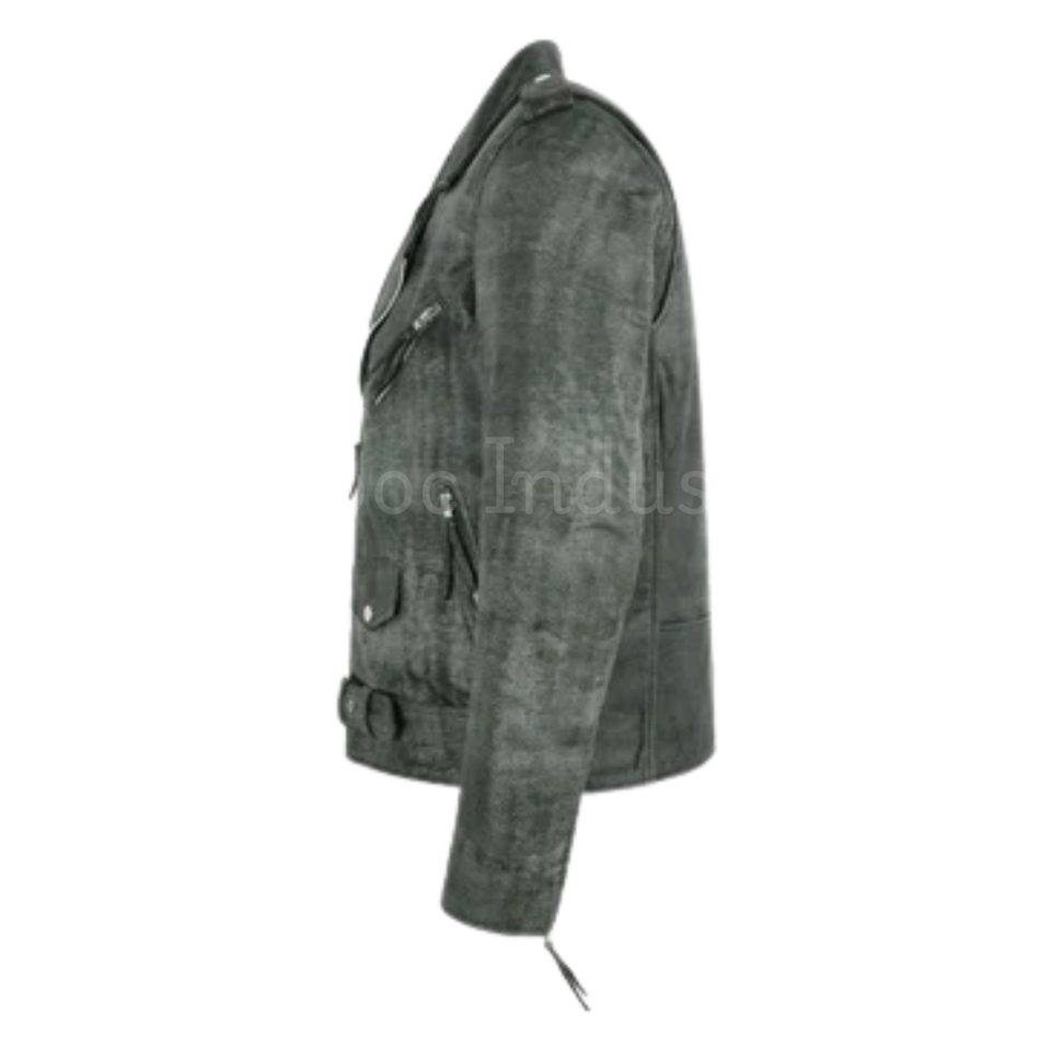 แจ็กเก็ตขี่จักรยานหนังฟอกวินเทจสำหรับผู้ชาย, แจ็กเก็ตนักขี่จักรยานหนังวัวแท้สไตล์โมโตพร้อมเข็มขัดรัดเอว