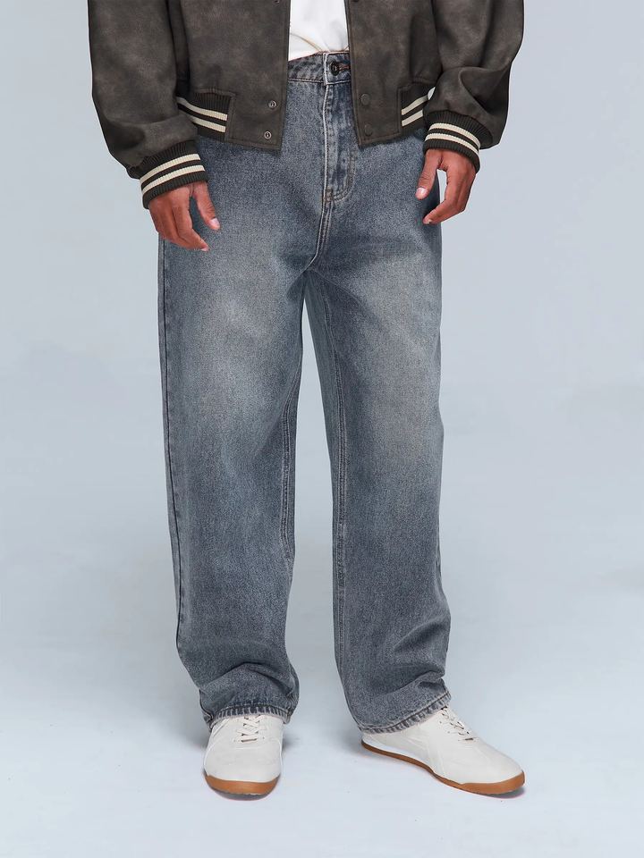 กางเกงยีนส์เดนิมทรงตรงสไตล์วินเทจสำหรับผู้ชาย ลุคหลวมสบายๆ สตรีทแวร์ แฟชั่นขายส่ง กางเกงผ้าฝ้ายใส่ได้ทุกวัน