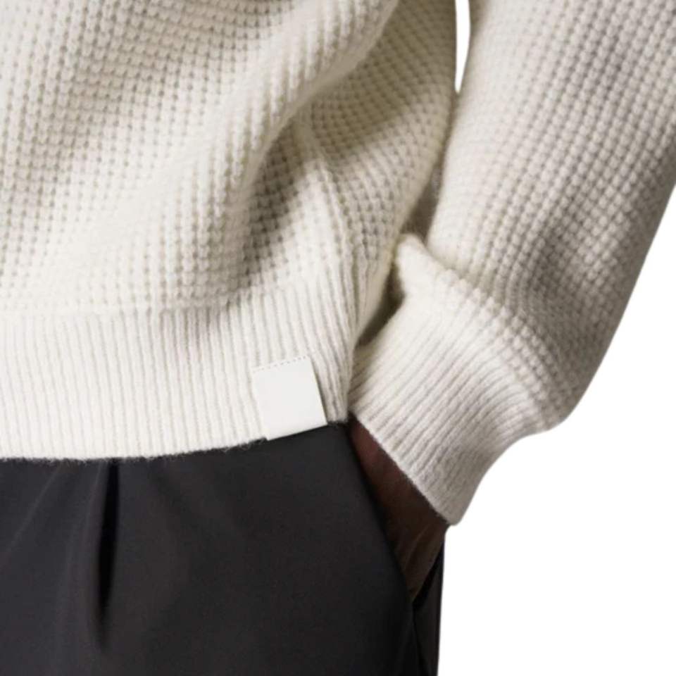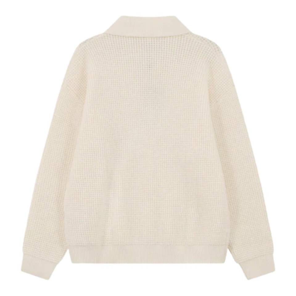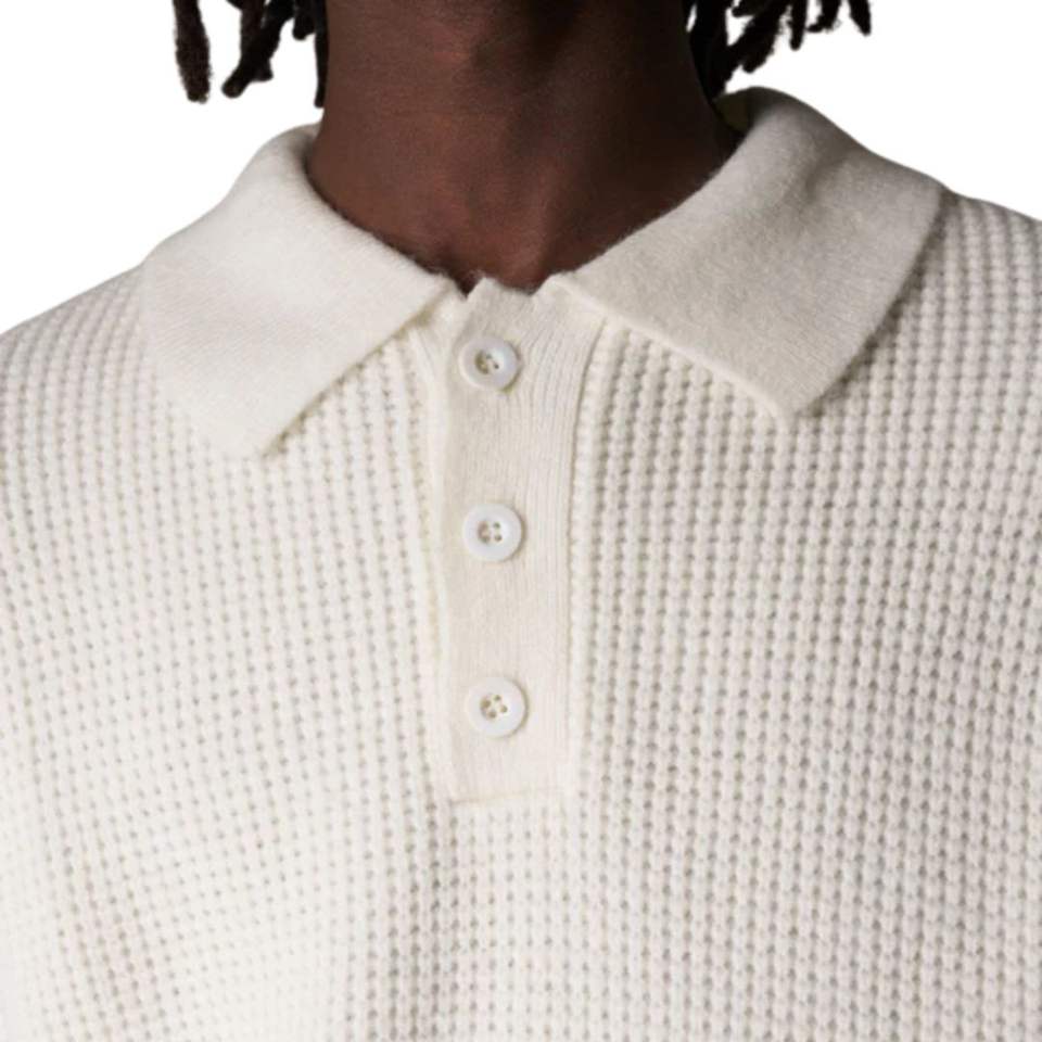 เสื้อโปโลแขนยาวผ้าวาฟเฟิลสำหรับผู้ชาย สีขาว สไตล์ลำลอง คอปกติดกระดุม เสื้อพูลโอเวอร์ เนื้อผ้านุ่ม ผสมผ้าฝ้าย รับผลิตตามแบบ OEM เสื้อผ้าบุรุษ